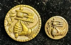 Ex Rare Antique pair of MEDIEVAL CLACKERS brass buttons, ca., 1880s/1890s. Measuring 1 -1/16ths inches in diameter and 11/16ths respectively. In excellent antique condition. Listed in the Big Book of Buttons. Don’t miss these wonders!!!! Postage on this item will be $5.00 for US delivery. Foreign postage will vary. Payment is expected within 24 hours unless other arrangements have been made ahead of time. I will be happy to combine winning auctions to save you postage.... just