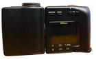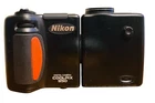 This Nikon Coolpix E950 digital camera in black features a 2.0 MP maximum resolution, 3x optical zoom, and 2 in screen size. It is equipped with digital zoom of 2.5x and includes built-in flash, auto focus, and audio recording capabilities. The camera uses AA batteries and is part of the Nikon COOLPIX series, with a model number E950. Made in Japan. Needs springs in battery compartment, will work when that is repaired.