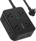 Extension Cord 10 FT, Flat Plug Power Strip Surge Protector with 10 Black Product Details Package Dimensions: 6.85 x 4.72 x 4.06 inches Item Weight: 1.37 pounds Item model number: MFS8U5FBL Manufacturer: MIFASOPOWER Brand: Mifaso Color: Black Total Power Outlets: 8 Voltage: 125 Volts Special Feature: Usb Slot 【12 IN 1 Power Strip with USB-C】- The extension cord with 8 AC outlets and 4 USB ports can power up 12 devices simultaneously. USB C charging port features 5V/3A Max, USB A port features 5V/2.4A Max, compatible with almost all usb devices. No a variety of chargers required, that is convenient and efficient, also saving the space. 【3 Side Design & Wide Spaced Outlets】- 3-side design and each AC outlets with 2 inches space in between, larger than standard 1.5 inch socket. Making it enough to fit big adapters and suitable for all kinds of equipment. Takes up less space on your desk or wall due to this compact 3-sided design, suitable for the home, office, and dorm room. 【Surge Protection & Overload Protection】- 900 Joules surge protector with overload protection protects your electrical appliances from lighting, surges or spikes. The reset/off switch with integrated circuit breaker for overload protection of all outlets. This power strip has overload protection, short-circuit protection, over current protection, over-voltage protection and overheating protection. 【UL approval 10FT Cord】Extra long extension cord with accredited by UL, which is made of pure copper, that delivers reliable power and holds up to 15A of power. The 10-foot power cord is long enough to reach distant wall outlet sockets. 【Flat Plug & Wall Mount】The flat plug features a low profile fits easily tight spaces behind sofa, nightstand, bookshelf and headboard. This mountable power strip can be fixed on the wall or desk by 2 keyhole slots on the back.
