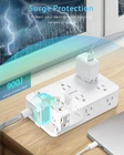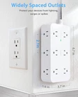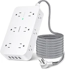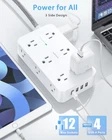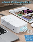 About this item 【All in One Power Strip】 - This 10 ft power strip with 12 AC outlets and 4 usb ports(2 usb c) power everything on your desk. With built in Smart IC technology,the 4 usb port can auto detect and deliver appropriate current to your devices. There are 2 keyholes on back allows you can mount this extension cord onto the wall or furniture easily. The 45° angled flat plug fits perfectly in narrow spaces like behind a bookshelf, nightstand and does not cover the bottom receptacle of a duplex outlet 【 2.1 in Wide Spaced & Space-Saving】- The 10 ft extension cord with 2.1 inches widely spaced in between outlets, larger than standard socket, fit big adapters without blocking each other. The compact power strip saves more space, make the table looks neat, suitable for the home, office, and college dorm room 【2 x USB C Power Strip】- Added extra 2 USB C ports for your devices, the USB C port can charge up to 5V/3A. USB-A ports can charge up to 5V/2.4A Max, all USB Ports Output is 5V/3.1A, 15.5W max which is 30% faster than other usb c charging station. With smart charging technology, it can auto-detects your devices and can reach faster charging efficiency, perfectly fit for your iphone, ipad, tablet etc 【Surge Overlaod Portection】 - The power strip surge protector built-in 900 joules surge protection for your phone, computer and other applianced from spikes and fluctuations. The on/off switch with integrated circuit breaker for overload protection of all outlets. It will automatically cut power to protect connected devices when voltage surge is overwhelming.(The surge protected indicator light on to show your devices are protected.) 【Multi Safety Protection】- RoHS, ETL Certificates. This surge protector power strip 10 ft cord has overload protection, short-circuit protection, over current protection, over-voltage protection and overheating protection. Environmental protection and fire-resistance PC shell with flame retardant at 1382℉ makes it more durable and longer lifetime