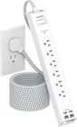 Extension Cord 10 ft - Long Power Strip Surge Protector, 6 AC 10 FT, White Product Details Brand: Addtam Color: White Total Power Outlets: 10 Voltage: 125 Volts Special Feature: On And Off Switch, Mountable, Usb Slot 【10 Ft Heavy Duty Extension Cord】- 10ft power strip is made of pure copper, which has better current carrying capacity (15A). This extension cord is UL approved with only 0.35-inch flat wall plug and 45-degree right angle design, this flat outlet extension cord is much thinner than traditional plugs. Flat plug power strip can close to the wall easily and hide in the back of furniture, bed or refrigerators, save every space for your home. 【10-IN-1 Extension Cord with Multiple Outlets】- The slim power strip with 6 AC surge protector outlets (15A/1875W) and 4 usb ports (3.1A/15V), provide ample space for multiple devices and adapters to be plugged in simultaneously. It can charge your cellphone, laptop, tablet, cameras without a variety of converters, save your space and make your desktop organized. Suitable for the home, office, and college dorm room essentials. 【2 USB- C Fast & Smart Charge】- Added extra 2 USB C ports for your devices, the power strip with USB C ports can charge up to 5V/3A. USB-A ports can charge up to 5V/2.4A Max. With smart charging technology, the outlet extender can auto-detects your devices and reach faster charging efficiency, perfectly fit for your iphone, ipad, tablet, bluetooth earphone etc. 【Easy Mount on Wall and Desk 】- Mountable power strip with unique screw fixation design on both end, allow this white compact extension cord securely installed in various applications (4 screws included). It is easy for mounting to walls, desks or furniture. Keep your desktop organized. The low profile extension cord also can be stable on your desktop or nightstand without slipping off, the flat extension cord makes it lighter than ordinary power strip. 【Multi Safety Protection with ON/OFF Switch】- This power strip has surge protection (900J), overload protection, short-circuit protection, over-current protection, short-circuit protection to help keep your devices safe. The on/ off switch can automatically shut off when the power exceeds rated value, to protect your expensive devices like computers, TV etc. ETL safety certified, with extension cord and other major components certified by UL.