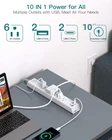 【10 Ft Heavy Duty Extension Cord】- 10ft power strip is made of pure copper, which has better current carrying capacity (15A). This extension cord is UL approved with only 0.35-inch flat wall plug and 45-degree right angle design, this flat outlet extension cord is much thinner than traditional plugs. Flat plug power strip can close to the wall easily and hide in the back of furniture, bed or refrigerators, save every space for your home. 【10-IN-1 Extension Cord with Multiple Outlets】- The slim power strip with 6 AC surge protector outlets (15A/1875W) and 4 usb ports (3.1A/15V), provide ample space for multiple devices and adapters to be plugged in simultaneously. It can charge your cellphone, laptop, tablet, cameras without a variety of converters, save your space and make your desktop organized. Suitable for the home, office, and college dorm room essentials. 【2 USB- C Fast & Smart Charge】- Added extra 2 USB C ports for your devices, the power strip with USB C ports can charge up to 5V/3A. USB-A ports can charge up to 5V/2.4A Max. With smart charging technology, the outlet extender can auto-detects your devices and reach faster charging efficiency, perfectly fit for your iphone, ipad, tablet, bluetooth earphone etc. 【Easy Mount on Wall and Desk 】- Mountable power strip with unique screw fixation design on both end, allow this white compact extension cord securely installed in various applications (4 screws included). It is easy for mounting to walls, desks or furniture. Keep your desktop organized. The low profile extension cord also can be stable on your desktop or nightstand without slipping off, the flat extension cord makes it lighter than ordinary power strip. 【Multi Safety Protection with ON/OFF Switch】- This power strip has surge protection (900J), overload protection, short-circuit protection, over-current protection, short-circuit protection to help keep your devices safe. The on/ off switch can automatically shut off when the power exceeds rated value, to protect your expensive devices like computers, TV etc. ETL safety certified, with extension cord and other major components certified by UL.