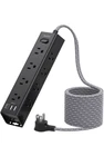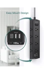 Extension Cord 10 ft - Power Strip Surge Protector, Flat Plug with 12 Outlets 3 USB, Wall Mount Overload Protection, 1050J, Desk Charging Station for Dorm Room College Office Essentials, Black
