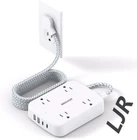Description : 【15Ft Extension Cord】15ft extension cord is made of pure copper, which has a better current carrying capacity (15A). The braided power cord is not easy to deform, is durable, and more safer. With only 0.35 inch ultra thin plug and 45° right angle design, the flat plug power strip is much thinner than traditional plugs, which can close to the wall easily, and hide in the back of furniture, bed or refrigerator. 【2.4 IN Wide Space】This power strip with 4AC widely outlets and 4 USB charging ports (Total 5V/3.1A) can power up to 8 devices simultaneously. 2.4 inches widely spaced in between outlets, larger than the standard sockets, fit big adapters without blocking each other. 【2 x USB C Charging Station】Added extra 2 USB C ports for your devices, the power strip with USB C port can charge up to 5V/3A. USB-A ports can charge up to 5V/2.4A Max. The power strip can be compatible with more USB devices, must-have accessories for college dorm rooms, homes, office 【Surge Protection & Overload Protection】900 Joules surge protector with overload protection protects your electrical appliances from lighting, surges, or spikes. It will automatically cut power to protect connected devices when a voltage surge is overwhelming. 【Multi Safety Protection】RoHS, ETL Certificates. This flat wall plug has overload protection, short-circuit protection, over current protection, over-voltage protection, and overheating protection. Environmental protection and fire-resistance PC shell with flame retardant at 1382℉ make it more durable and longer lifetime. Contact Us : If you have any comments or questions, Please contact us by sending us a message . We will hold an order open as long as you need.We will answer all emails within 12 hours. Feedback: F eedback is very important to us. If you have any problem, contract we at first. We will answer your question as soon as possible.