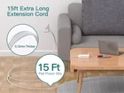【15 FT Long Extension Cord】Extra long 15ft cord can be more flexile to reach distant outlets and hard-to-reach places; 0.12in flat cord can easily run along the wall, floor or under carpet without causing a bulge, protecting your family from tripping, making sweeping and mopping easier. The ultra thin flat plug fits easily in tight spaces like behind furniture, bookshelves, desks. 【9 IN 1 Extension Cord with Multiple Outlets】 This flat power strip 15ft could turn 1 socket into 6 AC outlets (1875A/15A Max)and 3 USB ports, charges 9 devices simultaneously without blocking, keeping your desktop organized; You can use it in any indoor places such as home, office and dorm room. With built-in Smart IC technology, the multi plug extension cord with USB ports can auto-detect and deliver appropriate current to your devices phone, iPad, tablet, kindle, or lamp. 【1080J Surge Protector & On/Off Switch】Equipped with overload protection, short-circuit protection, over-current protection, this extension cord with multiple outlets can protect your expensive electronics, providing you with a safe and reliable charging environment. The on and off switch can automatically shut off when the power exceeds rated value, to protect your expensive devices like computers, TV, etc. (The "Surge Protected” indicator light on to show your devices are protected) 【Desktop Power Strip with USB C Ports】Added extra 2 USB C ports for your devices, the USB C port can charge up to 5V/3A.Compatible with your cellphone, laptop, tablet, earphone or cameras without a variety of converters, keep your desktop organized. Meeting your various charging demands for bedroom, bathroom, kitchen. The two mounting holes on back allows this power strip to be securely installed in various applications.