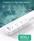 Extension Cord 15 ft, Surge Protector Power Strip, Long Extension Cord with 9 3 【12-in-1 Power Strip with USB Ports】Surge protector power strip can turn 1 socket into 9 widely outlets and 3 USB Charging ports, and can power up to 12 devices simultaneously without a variety of converters. all USB outlets output is 5V/3.1A. With smart charging technology, the outlet extender can auto-detect your devices and reach faster charging efficiency, perfectly fit for your iPhone, iPad, tablet, Bluetooth earphone, etc. 【15 Ft Flat Extension Cord 】 The power strips with surge protection with multiple outlets, long enough to reach wall outlet Sockets, suitable for the home, office, and college dorm room essentials. A perfect solution for when power outlets are not conveniently located nearby. 45°angled plug doesn’t block the bottom receptacle. 【 3 Sides Design & Wide Space 】 The flat extension cord has a 3-side design-easy to accommodate devices with large plugs, without overlap. The two mounting holes allow this wall-mount power strip to be installed in various applications horizontally or vertically, like workbenches, walls, counters, dorm rooms, and more. 1.57 inches widely spaced in between outlets, larger than the standard socket, and fit big adapters without blocking each other. 【900J Surge Protector & On/Off Switch】This extension cord with surge protection & overload protection protects your electrical appliances from lighting, surges, or spikes. The minimum energy-absorbing capacity of 900 Joules. The on and off switch can automatically shut off when the power exceeds the rated value, to protect your expensive devices like computers, TVs, etc. (The "Surge Protected” indicator light is on to show your devices are protected) 【Multi Safety Protection】RoHS, ETL Certificates. This extension cord with multiple outlets has overload protection, short-circuit protection, over-current protection, over-voltage protection, and overheating protection. Environmental protection and fire-resistance PC shell with flame retardant at 1382℉ make it more durable and longer lifetime.