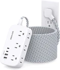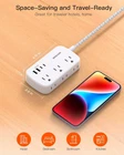 Extension Cord 25 Ft, Flat Plug Power Strip with 6 Outlets with 4 USB Ports2 USB ??? 25 ft Extension Cord with Flat Plug ???This long extension cord with 25FT is long enough to make it more flexible, flat plug design indoor extension cord with USB can fit easily in tight spaces, such as a desk, or nightstand; 45 degrees right-angle create enough room makes this USB power strip flat plug does not obstruct other plugs, suitable for installing behind sofa, wardrobe, bookshelves, and other furniture. The braided power cord is not easy to deform, is durable, and more safer. ???10-in-1 Power Strip with USB Ports???Flat extension cord could turn 1 socket into 6 outlets 2 USB-A and 2 USB-C, which could charge up to 10 devices at the same time. Compatible with your cellphone, laptop, tablet, earphone, or cameras without a variety of converters, keeps your desktop organized, must-have accessory for the college dorm room, home, office, bedroom, kitchen etc. and this mountable power strip can be fixed on the wall or desk by 2 keyhole slots on the back. ???2 x USB C Power Strip???Added extra 2 USB C ports for your devices, the USB C port can charge up to 5V/3A. USB-A ports can charge up to 5V/2.4A Max, all USB Ports Output is 5V/3.1A, 15.5W max which is 30% faster than other power strip. With smart charging technology, it can auto-detect your devices and can reach faster charging efficiency, perfectly fit for your iPhone, iPad, etc. ???Cruise Accessories Must Haves ???The small cruise power strip with NO surge protection, it's absolutely a must-have Home and Cruise Ship accessory as Cruise lines require that power strips DO NOT have Surge Protection. Compact and lightweight, easy to carry, and best for travel. ???Multi Safety Protection???RoHS, ETL Certificates. This long power strip has overload protection, short-circuit protection, over-current protection, over-voltage protection, and overheating protection.