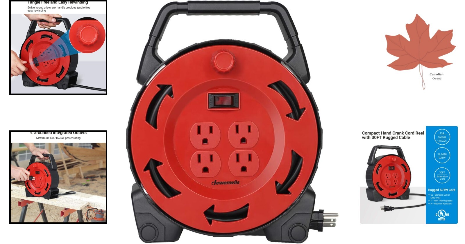 Extension Cord Reel - 30 FT Hand Wind Retractable - 4 Outlets - Portable - UL ‹ › ‹ › ‹ › ‹ › ‹ › ‹ › ‹ › ‹ › ‹ › Extension Cord Reel - 30 FT Hand Wind Retractable - 4 Outlets - Portable - UL Features: 30 feet long 16/3 gauge SJTW wear and weather resistant extension cord Swivel round grip crank handle for tangle-free, easy winding 4 built-in grounded outlets for powering multiple tools at once 13A circuit breaker for protection against short circuit and overloads Compact and lightweight design for easy portability 1-year warranty and certified to UL standards Benefits: Durable and weather resistant for indoor/outdoor use Easy winding and untangling of the extension cord Ability to power multiple tools simultaneously Protection against short circuit and overloads Convenient and portable for job sites or garage use 1-year warranty for peace of mind Why choose our Extension Cord Reel? Tired of dealing with tangled and messy extension cords? Our Extension Cord Reel is the perfect solution. With its durable and weather-resistant 30-foot extension cord, you can easily power your tools both indoors and outdoors. The swivel round grip crank handle ensures tangle-free winding, making it convenient for storage and next use. Plus, with 4 built-in grounded outlets, you can power multiple tools at once, saving you time and effort. The 13A circuit breaker provides protection against short circuit and overloads, ensuring the safety of your devices. And with its compact and lightweight design, you can easily carry it to job sites or keep it handy in the garage. Don't settle for inferior extension cord reels - choose our reliable and convenient option today! Order your Extension Cord Reel now and experience the convenience and reliability it offers! Shipping Free & Fast Shipping - We offer free shipping to most of Canada with a normal delivery time of 3-7 days. However, due to the current situation, additional delivery time (up to 3 weeks) may be required for some items. Alternative Carriers - We may use alternative carriers (e.g. Purolator, FedEx, UPS, etc.) to ensure your package arrives safely and on time. Due to the use of multiple carriers, we are unable to provide a tracking number automatically. Handling Time - Orders are processed and shipped within 1-2 business days of receiving cleared payment. Shipping Restrictions - Shipping to YT, NT, NU, NL, A0K, A0P, A0Q, A0R, and X0A-Y9Z (Canada Post Air Stage Locations) may incur shipping charges or delivery restrictions. Please contact us before ordering, or your order can be refunded/cancelled. Provincial Restrictions - There may be restrictions based on your province of purchase. For example, air gun accessories cannot be shipped to Quebec. Contact for Tracking Updates - If you require tracking updates or have any concerns about the delivery of your order, please feel free to contact us, and we will be happy to assist you. Return 30-Day Hassle-Free Returns - We want you to be completely satisfied with your purchase. If you are not, you can return the item within 30 days of receiving it for a full refund or exchange. Easy Return Process - To start a return, simply contact us and we will provide you with a prepaid return shipping label and detailed instructions. Restocking Fee - There are no restocking fees for returns. However, the buyer is responsible for return shipping costs if the return is not due to a seller's error. Refund Processing Time - Refunds will be processed within 5 business days of receiving the returned item in its original condition. Payment We accept all major credit cards, PayPal, and Apple Pay for your convenience. Your payment information is secure and encrypted to ensure a safe and seamless transaction. Please complete your payment within 3 days of purchase to avoid any delays in shipping. Feedback Your feedback is extremely important to us. We strive to provide the best products and customer service possible. If you are satisfied with your purchase, please take a moment to leave us a positive review. If you have any concerns or issues with your order, please contact us before leaving negative feedback. We are committed to resolving any problems and ensuring your satisfaction. Contact Us If you have any questions or concerns, please feel free to reach out to our customer support team. You can contact us through the eBay messaging system. We are available Monday to Friday, 9:00 am to 5:00 pm EST, and we will do our best to respond to your inquiry within 24 hours. Thank you for supporting our small family business!