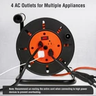 Portable extension cord storage reel: Designed to hold up to 100 ft of 16/3, 14/3, or 75 ft of 12/3 gauge power cord; ideal for homes, backyards, garages, or workshops; features a sturdy metal carrying handle for enhanced efficiency; suitable for dry-location use 15 AMP circuit breaker for safety: Equipped with a 15 AMP circuit breaker and reset switch; protects against damage from excess current; note: maximum amp limits depend on the gauge of the extension cord (10A to 15A); refer to the manual's current limit diagram for guidance Tangle-free smooth operation: Ergonomic design with a rugged open reel; stable steel metal base; easy-grip handle and side-mounted hand crank knob for quick winding and unwinding; multifunctional cable management clip locks the cord at the desired length; ideal for an extension cord storage reel Multiple grounded power outlets: Features four grounded power outlets; allows simultaneous use of multiple tools; convenient On/Off switch with LED indicator eliminates the need to unplug during breaks; indicates power status for safe operation Sturdy, durable, and portable design: Heavy-duty electrical cord wheel; impact-resistant polypropylene open drum design; rigid metal carrying handle and durable steel base ensure portability and durability; perfect for bringing power where you need it with this extension cord storage reel ETL Certified for Enhanced Safety