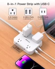 Extension Cord with Multiple Outlets - Flat Plug Power Strip with USB Ports (2 USB C), 5Ft Long Cord, Overload Protection and Wall Mount for Home Dorm Room Essentials 【8 IN 1 Power Strip with USB-C】- The extension cord with 4 AC outlets and 4 USB ports can power up 8 devices simultaneously. USB C charging port features 5V/3A Max, USB A port features 5V/2.4A Max, compatible with almost all usb devices. No a variety of chargers required, that is convenient and efficient, also saving the space. 【Wide Spaced Outlets】- 4 AC outlets with 2.3 inches space in between, larger than standard 1.5 inch socket. Making it enough to fit big adapters and suitable for all kinds of equipment. Takes up less space on your desk or wall due to this compact 3-sided design, suitable for the home, office, and dorm room. 【Overload Protection】- The reset/off switch with integrated circuit breaker for overload protection of all outlets. Combines overload protection, short-circuit protection, over current protection, over-voltage protection and overheating protection, and more to protect you and your devices. 【Flat Plug & Wall Mount】- The 0.35inch ultra slim flat plug fits easily tight spaces behind sofa, nightstand, bookshelf and headboard. This mountable power strip can be fixed on the wall or desk by 2 keyhole slots on the back. 【5FT Extension Cord & Travel Essentials】- Extend the reach of your electronics with the 5FT braided extension cord, which is not easy to deform. As Cruise lines require that power strips DO NOT have Surge Protection. The travel cruise power strip is compact and lightweight, easy to carry. SHIPPING Domestic Buyers - We ship within 3 business days of payment, usually sooner - We offer FREE shipping on all orders! - We only ship to the lower 48 states, no APO/FPO addresses or PO Boxes allowed - We have confidence in our products, but if you are not fully satisfied please contact us within 30 days of purchase and you will get full refund. International buyers – please note: Import duties, taxes, and charges aren't included in the item price or postage cost. These charges are the buyer's responsibility. - Please check with your country's customs office to determine what these additional costs will be prior to bidding or buying. Return Policy - This product comes with 30-Days Money Back Guarantee. - If you receive an item and it doesn't work properly or you don't like it because of any reason at all, - we have a 100% refund/return policy. We will ship you a new item or refund your money for the full sale amount. - For all returned products, buyers MUST contact us for the returning address. * Order Cancellation Policy ** You can return a product for up to 30 days from the date you purchased it. 1. The seller reserves the right to cancel the special case only due to eBay cancellation fee. 2. The decision of seller is the final. 3. The seller will respond to the cancellation request within 2 business days. Please wait for the result of cancellation. 4. In case the cancellation is not completed by some reasons, the buyer can follow the options below to get the refund. 4.1 The buyer can reject the item when it arrives. 4.2 The buyer can send the item back to the seller within 30 days If the buyer receives item (USA Shipment ONLY). The seller will provide the FREE return label to the buyer when the buyer opens " Return Item" case on eBay by using the reason as "Change my mind" ONLY. 5. When buyer has placed the order. The order will be processed and completed by automatic warehouse system within 5 minutes. In case that buyer sends the cancellation request after 5 minutes of placing the order, the request will be rejected. **Sending direct message to cancel the order is not allowed for every case.* Return Policy For the return case - If buyer would like to return the items for refund or replacement, please CONTACT SELLER to receive the free return label from seller. The refund or replacement will be processed with the tracking number of return label which is provided by seller only. The other ways of return which are not approved by seller will not be processed for the refund or replacement.
