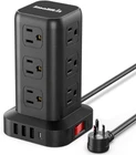 【16 IN 1 Tower Power Strip with USB】- This power strip tower surge protector with 12 AC outlets and 4 smart USB (1 USB C) charging ports(5V/3.4A) can power up to 16 electronic devices simultaneously. Integrated circuit breaker and 1200 Joules protection rating ensure the safety of your electronics. 【USB- C Charge Up to 30% Faster 】4 USB ports total 3.4A, each USB A port features 2.4A Max output. USB C charging port features 3A Max. Built-in with smart technology, detecting charging devices and deliver optimal charging speed automatically, compatible with most USB devices. 【Safe and Ease of use 】The 6.5FT upgraded extension cord with multiple outlets is made of pure copper. Reinforced design at the junction of the stand of power strip tower and the wire head. To protect the terminal from wear and tear. Environmental protection and fire-resistance PC shell with flame retardant at 1382℉ makes it more safe and longer lifetime. 【Overload Protection and Surge Protection 】The surge protector power strip will automatically cut power to protect your expensive devices when a voltage surge is detected. The reset/off switch with integrated circuit breaker for overload protection of all outlets. This outlets power strip has 8-overload protection. 【What You will Get】 Power strip with USB ports, our life time technology support and friendly customer service.The steady base with anti-slip mat on the bottom effectively avoid wobbling and slipping around.
