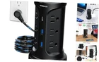 Return Policy Fast Delivery Trusted seller Extension Cord with Multiple Outlets Surge Protector Tower Power Strip with Surge Protection, Screw Wall Mount Outlet with 12 Ac Outlets with 3 USB Ports(1 USB C),6.5 Ft, Overload Protect for Office Product Description 15 IN 1 Power Strip Tower with USB C Ports: This power strip tower with 12 AC outlets(current:1875W/15A) and 3 smart USB(1 USB C) charging ports(USB A5V/3.1A/USB C 5V/3.0A) and can power up to 15 electronic devices simultaneously. This USB C power strip(voltage:110V-125V) can expand 1 wall outlet to 15 and doesn't take up much space. USB- C Charge Up To 30% Power Strip Surge Protector: Surge protector tower provides over-surge, over-current, over-load, over-heating, short-circuit, and high-temperature protection. 4 USB ports total 3.4A, each USB A port features 2.4A Max output. USB C charging port features 3A Max. Built-in with smart technology, it detects charging devices and delivers optimal charging speed automatically, compatible with most USB devices. Screw Wall Mountable and Flat Plug: This USB power strip occupies very little space thanks to its unique vertical tower design. On the bottom, Four screw-mounting tabs allow this power strip tower USB to be securely installed on workbenches, behind the TV, garage, bedside, under counters/desk/cabinet, and dresser. The low-profile angled flat plug design is great for stashing under or behind furniture. 6.5 FT Extension Cord 14 AWG: This outlet tower comes with a 6.5ft 14AWG extension power cord, which helps you get rid of tangling cords and cable clutter. The portable and slim size makes it suitable for home office desktop workbench dorm room, etc.USB extension lead tower is made of premium flame retardant ABS and PC, fire resistant. It can protect against fire and protect your family. Safety Guarantee: Extension Cord Surge Protector with USB Port is FCC certified. Our long cord surge protectors are tested by authoritative testing organizations and offers 24/7 customer service. Get one for your home or office today! Shipping Returns Payment Shipping Shipping is FREE to all addresses other than APO/PO boxes in the lower 48 states. All our stock ships from US-based warehouses. Shipped via USPS or UPS (depending on location and package weight) Unless stated otherwise, all orders will ship within 24-72 hours of your payment being processed. Check our feedback to see the great reviews of FAST shipping we offer. Returns Seller does not accept returns Payment We currently accept payment via eBay managed payments only. Once payment is cleared, we will dispatch your shipment within 1-3 business days. Please refer to the "Shipping" tab for more information regarding shipping speed to your destination.
