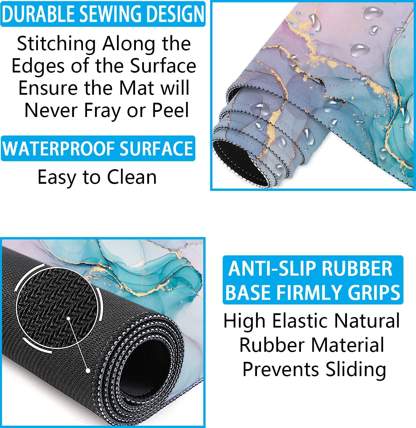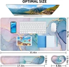 【4-in-1 Mouse Pad Set】Our large mouse pad and wrist rest set includes desk pad (35.4x15.7inch), keyboard wrist rest(17.3x3.5inch), mouse wrist rest(5.5x3.1inch), cup coaster(3.5x3.5inch). No need to buy separately, at a super cost-effective price. This desk pad for keyboard and mouse is large enough to fit your mouse, gaming keyboard, and other desk items. Our desk pad protector can keep a clean, uncluttered desk. This helps to improve the gaming experience or work efficiency in the office. 【Exquisite Appearance】Our extended mouse pad and keyboard wrist rest using advanced printing technology, the mouse pad has clear patterns, bright colors, exquisite patterns bring fun to your life, and bring a sense of relaxation when the body and mind are exhausted. Whether this desk mat with wrist rest set is for study, office, game, decoration or as a gift, our non-slip desk pads with wrist support is very suitable for you. 【Ergonomic Design】This mouse pad with wrist support set designed with memory foam and soft smooth material to the pads, lightweight comfortable and durable for your daily work life. This gaming mouse pad wrist support set is contoured ergonomically to keep arms, wrists, and hands from getting sore while working and gaming for long periods of time, maximum reduce wrist stress and tiredness. 【Ultra-smooth Surface】The smooth fabric of this desk mat protector allows you moving your mouse easily and at the same time precisely locate it, and give your hand a comfortable environment to operate your mouse. Optimized for fast movement while maintaining excellent speed and control during your work or game. Compatible with mechanical and optical mice. 【Anti Slip & Stitched Edges】The soft and dense non-skid nature rubber base keeps this desk pad cover firmly in place. Just immerse into your work or games without worrying about the annoying mouse pad movement. And the delicate stitched edges can prevent wear, deformation and degumming in prolonged use. Design for security and durability, and enhances the aesthetic and lifespan of the mouse pad. Product Description LATEEFAH 4-In-1 Large Desk Pad + Keyboard Wrist Rest + Mouse Wrist Rest + Cup Coaster Set Our extended desk mouse pad with wrist support set is a variety of fashionable pattern for you to choose, each color shows your personal style, makes your desktop different. The wrist rests for keyboard and mouse will relief your wrist pain after long-time working with the computer. Whether you seek absolute speed, complete control, or the best of both worlds, we can help you make a perfect choice. What you will get: XXL mouse pad:35.4 x 15.7 inches Mouse wrist rest:5.5 x 3.1 inches Keyboard wrist rest:16.9 x 3.5 inches High elasticity natural rubber base, no peculiar smell.Dense non-slip natural rubber base provides heavy grip preventing sliding or movement of mouse pads and provide stable operation of the mouse. Our large mouse pad surface is made of premium-textured smooth lycra cloth with clear printing patterns. And delicate sewn stitched frame ensures itself to be used for a long term without deformation or fall apart,enhances the aesthetic and lifespan of the mousepad. Our desk mat with keyboard and mouse wrist rest set fits the wrist perfectly. Provide good support for your wrists, and minimize wrist pressure and fatigue. Effectively avoid friction between the wrist and the desktop and prevent injuries to the wrist. XXL Desktop Mouse Pad This extra large mouse pad that turns an area of your desk into a consistent and comfortable computer gaming or working space. Perfect for working or gaming. Our desktop mouse pad is reinforced stitched edges guard against surface peeling, while the textile-weaved surface gives superior control for lethal in-game accuracy. The desk protector mat helps to enhance the work efficiency in office. The large, thick surface also protects your desk surface against scratches/damage! Mouse Wrist Support and Keyboard Wrist Rest Ergonomic shape and just the right height keeps your wrist in a natural position rather than a twisted angle. Non-slip textured bottom with the natural rubber material to prevent gliding or unnecessary movement. Memory foam filling, comfortable, lightweight and durable, no deformation. Adopt soft and breathable materials to provide lasting support for your wrist. Smooth Surface Extra Large Area Keyboard and Mouse Wrist Support Stitched Edges Guarding Non-slip Rubber Base Vibrant Printing Color Wrist Pain Relief Thick Material Our large desktop mouse pad make the tabletop look tidy and everything is in order. Mouse wrist support and keyboard wrist rest ensure proper alignment of the wrist and hand to help reduce CTS. Choose from wrist supports made with memory foam or gel to help minimize stress on wrists as well as provide comfort and support,make typing/learning/playing games easier. Our unique designs on smooth fabric are not only a delight for your wrists, but also for your eyes. Get rid of the dull black mouse pads and bring some colour and fun back into the office. Your colleagues will envy you!