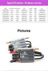 FLYCOLOR KREKEN 40A 60A 90A 120A 150A ESC Waterproof 3-6S 6V/7.4V BEC 2-way 32-bit Brushless Speed Controller for RC Racing Boat Key Features: 1. High Performance MCU STM32F051 with ARM 32bit cortex and working frequency of 48MHz 2. Nano coating waterproof, Nano coated, splash free(too avoid damage, please dry at the air once soaked) 3. Specialized for racing boat, violent durable, speedy, light weight, mini size, to meet with model boat racing use 4. Supports brushless motor up to 240k rpm 5. Adjustable switch BEC: Built-in BEC adjustable 6V/7.4V 5A, low power consumption for high power servo. 6. Multiple protection guarantees the normal use, judging the working condition by the alarm after powered up 7. The starting mode can be set, throttle response fast, and the speed regulation linearity is very stable which is suitable for various RC boat. 8. Safe power-up, the motor will not start up no matter whether the throttle stick is. 9. Programmable low voltage threshold for personalized requirement. 10. Wifi programming, mobile App programming and parameter setting, real time data being monitored(current voltage, rpm, temp etc.) recording, need optional part Flycolor Wifi Trans. 11. High efficiency, heat dispatching system, aluminum alloy water-cooling heat sink, assure the ESC is in good condition. Specification(Kraken 40A): MCU: 32 bit Continuous Current (A): 40 Amps Burst Current(A): 60 Amps Voltage: 3-6S Lipo BEC Output: 6V/7.4V 5A Size(L*W*H): 66X35X9.5mm Weight: 42g Specification(Kraken 60A): MCU: 32 bit Continuous Current (A): 60 Amps Burst Current(A): 80 Amps Voltage: 3-6S Lipo BEC Output: 6V/7.4V 5A Size(L*W*H): 70x35x9.5mm Weight: 46g Specification(Kraken 90A): MCU: 32 bit Continuous Current (A): 90 Amps Burst Current(A): 110 Amps Voltage: 3-6S Lipo BEC Output: 6V/7.4V 5A Size(L*W*H): 98x36.6x10.5mm Weight: 77g Specification(Kraken 120A): MCU: 32 bit Continuous Current (A): 120 Amps Burst Current(A): 140 Amps Voltage: 3-6S Lipo BEC Output: 6V/7.4V 5A Size(L*W*H): 98x36.6x10.5mm Weight: 84g KRAKEN 150A: Continuous Current (A): 150 Amps Burst Current(A): 170 Amps Voltage: 3-6S Lipo BEC Output: 6V/7.4V 5A Size(L*W*H): 110x48.1x15mm Weight: 118g MCU: 32 bit KRAKEN 180A: Continuous Current (A): 180 Amps Burst Current(A): 200 Amps Voltage: 3-6S Lipo BEC Output: 6V/7.4V 5A Size(L*W*H): 122x48.1x15mm Weight: 122g MCU: 32 bit Note: If you want to set the parameters for FLYCOLOR KRAKEN and WinDragon Series ESC, then you need to purchase the FLYCOLOR WIFI Programming Module separaetly.