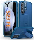 FNTCASE for Samsung Galaxy S23-FE Case: Military Grade Drop & Shock Protection Cell Phone Cover with Kickstand | Heavy Duty Rugged Phonecase Protective Bumper Textured(Blue)