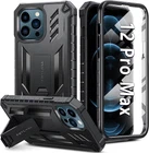 FNTCASE for iPhone 12-Pro-Max Phone Case: Military Grade Drop Proof Protection Mobile Cover with Kickstand | Matte Textured Rugged Shockproof TPU | Protective Sturdy Cases - Black