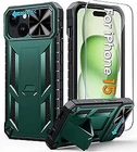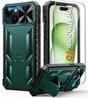 FNTCASE for iPhone 15 Protective Phone-Case: Military Grade Dropproof Cell Phone Cover with Kickstand & Slide | Heavy Duty Rugged Phonecase Bumper Textured | Heavy Duty Protector(Green)