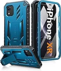 FNTCASE for iPhone XR Phone Case: Military Grade Full Protection Shockproof Hard Phonecase with Kickstand - Rugged Protective Cases Matte Textured Drop Proof Heavy Duty Cover - Blue