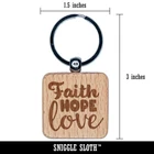 Faith Hope Love Engraved Wood Square Keychain Tag Charm