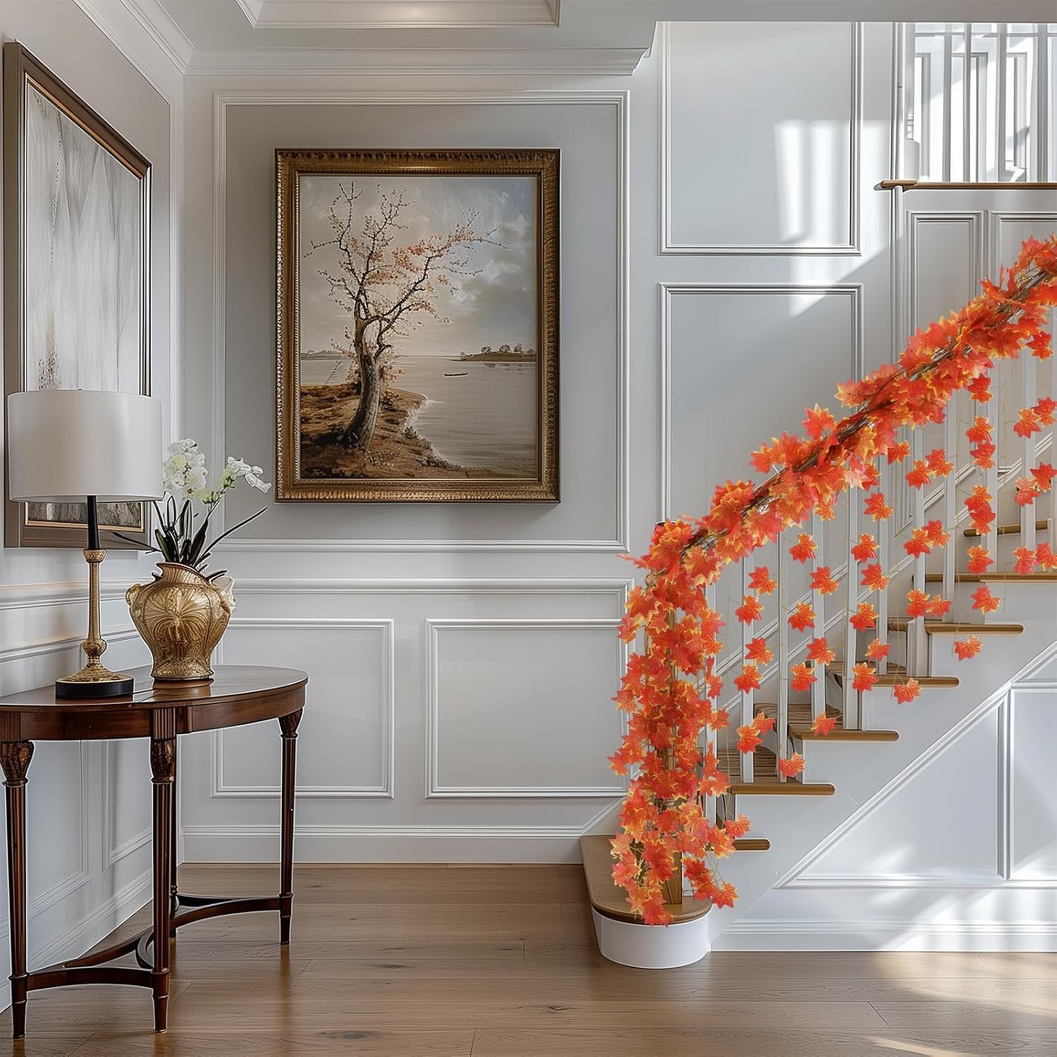 Fall Leaf Garland for Room Decor(12 Pack),Artificial Maple Leaves,Autumn Red LuxeFusion Product Description Features 【Fall Decor Garland Package】:Includes 12 fall leaf garland, Our fall maple garland each garland 7 FT Long,Leaves about 3.15 inches in diameter,Each vine holds 30 leaves. 【Realistic Appearance】:Our garland Plants maple Leaves,Featuring wonderful,shapely leaves and fall hues,looks lifelike and bringing a warm and pleasant atmosphere to your party and family. 【Versatile】: Red ivy garlands are suitable for Indoor, Outdoor, home decoration,Autumn, Wedding, Door, Fireplace, Thanksgiving, Halloween, Harvest, Christmas and Dinner Festival party,etc. add strong festival atmosphere to your space. it can also decorate balcony,Living room,bedrooms, bathrooms, garden, table, swing stand, stair banisters, restaurants, office. 【Premium Quality】: The artificial maple leaves are crafted from high-quality silk, with environmentally friendly plastic stems that are resistant to strong winds and sunlight. Durable and odorless, they are suitable for both outdoor and indoor decorations, allowing you to enjoy them for several seasons. 【Service】: Freyalife is committed to serving each customer with dedication and sincerity. if you have any questions about our fake flower vine, please feel free to contact us via email. Product Details Is Artificial Garland: Yes Shape: Leaf Manufacturer: Freyalife Package Dimensions: 5.83 x 4.33 x 3.39 inches Item Weight: 4.6 ounces Country of Origin: China Item model number: FZFY-001 Brand: Freyalife Color: Red Material: Silk Item Length: 84 Inches Plant or Animal Product Type: Ivy Free Shipping All orders ship free and fast to your doorstep. Easy Returns Satisfaction guaranteed. 30-day returns, no questions asked. 24/7 Support Contact us anytime; we’re here to help, day or night. Brought to you by LuxeFusion – Quality you can trust.