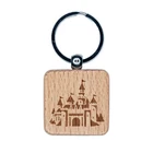 Fantasy Fairytale Castle with Towers Engraved Wood Square Keychain Tag Charm