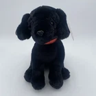 Fao Schwarz Black Labrador Retriever Plush Dog Lab Stuffed Animal Details: black lab dog push animal with red sparkle collar Condition/flaws: original tags attached, no flaws. smoke & pet free home Measurements: Around 12" tall Around 9" long from paw to paw