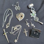 9 Pc Lot Fashion Jewelry Variety Silver Tone Metal Hamsa Hand Of Fatima Necklace-18" Chain With 3" Extension Hand Measures-1.25" Long, 3/4" Wide Star Necklace-18" Chain With 3" Extension Star Measures-1/5" Leaf Part Of Earrings Measures-1" Long Cross Part Of Earring Mesures-3/4" Long Small Cross Measures 1 3/8" Long, 3/4" Wide Sword Pendant Measures-2.3/4" Long, 1" Wide All From Boutique Liquidation Fashion Jewelry Jewelry Making Gifts Personal Use All New Pieces Never Worn Or Used Every Effort Has Been Made To Accurately Describe & Photograph This Item. Some Colors May Vary Depending On Lighting & Device Used To View. Please Reach Out If You Have Questions Prior To Purchase. I Am Happy To Help. Shipping From A Smoke & Pet Free Facility. USPS Ground Advantage