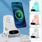 --Wireless Fast Charge Charger Specific ation: --Product name: Wireless Charger Stand --Material: PC, ABS, electronic components --Color: White, green, pink --Transmission distance: ≤10mm/0.39in --Charging frequency: 100K-205K HZ --Conversion rate: ≥80% --Voltage: 9V/12V --Power: 66W --Product size: about 9.6 x8.8 x14cm / 3.78 x3.46 x5.51 in --Product weight: about 190g Packing List: --1pcs*Wireless Charger Stand --1pcs*magnetic head --1pcs*type-c magnetic head --1pcs*fast charge cable"