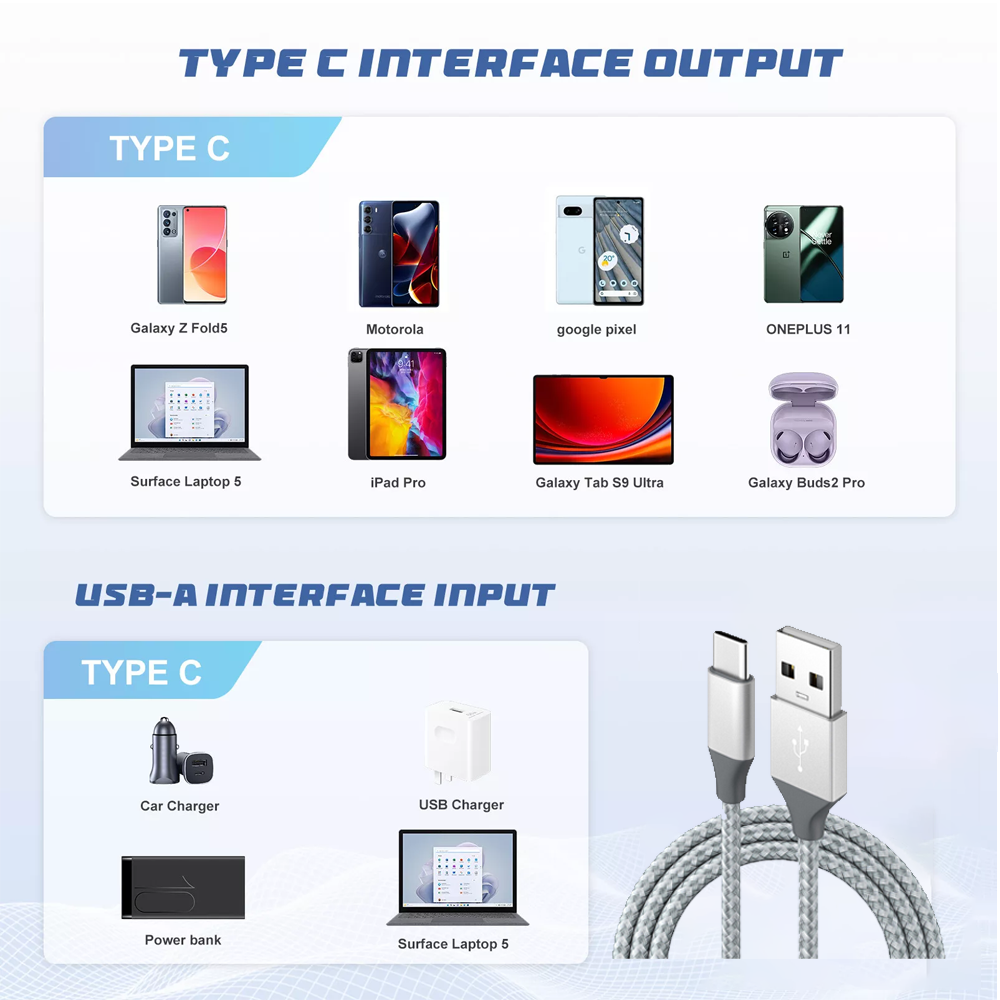 Fast Charge USB A to USB C Cable 10ft / 6ft / 4ft Braided Charging Sync Type-C Cord for iPhone 15 Pro Max, iPhone 15 Pro, iPhone 15, iPhone 15 Plus, iPhone 16, iPhone 16 Plus, iPhone 16 Pro, iPhone 16 Pro Max This cable is easy to carry, perfect for traveling, keeping it in the glove compartment, purse, desk, or anywhere else where you could ever need an extra cable to either sync or charge your cell phone or tablet with type-C USB connector. Quick transfer your data with USB port. Use the USB Cable to charge and sync your phone with your Windows PC. CONVENIENT DESIGN - The standard Type C design supports fast charger of your smartphone or mobile device. The extra-long length of this cable allows for maximum reach and lets you charge from virtually anywhere whether your home on the couch or driving in your car. MATERIAL – This fast charging cable is made with high-quality double braided nylon. It is tangle-free, durable and sturdy. CHARGING SAFETY - Built-in 5K pull-up resistor protects your device from potential danger CHARGE & SYNC – The high-quality galvanized copper wire ensures fast data transfer and fully supports maximum charging rate. CONNECTOR TYPE - Type C (USB C) SUPPORT FAST CHARGING - It will fast charge cell phones with fast charger feature. Please use a fast charger adapter. Compatibility: Please check and chose your device above. Included in the package: 1x 3/6/10ft (1/2/3M) braided Type-C charging cable 1x 15W charger ( your choice ) Shockproof Mag Safe Case For iPhone 16 15 14 Pro Max 13 12 11 Camera Lens Cover 6.65 USD 7.07 USD Free shipping 6% off 13-24mm Leather Watch Band Bracelet Strap Replacement Deployment Clasp Buckle US 9.39 USD 9.99 USD Free shipping 6% off Premium Leather Pouch Belt Clip Phone Holster Case For iPhone 15 14 13 Pro Max 14.06 USD 14.96 USD Free shipping 6% off Personalized Custom Case For Samsung Galaxy S24 FE Ultra S23 22 21 A15 A14 A53 7.51 USD 7.99 USD Free shipping 6% off Privacy Anti Spy Magnetic 360 Protective Case For iPhone 16 Pro Max 15 14 13 11 9.07 USD 9.65 USD Free shipping 6% off New Shockproof TPU Clear Protective Case Cover For Samsung Galaxy Buds 3 / 3 Pro 9.03 USD 9.61 USD Free shipping 6% off For iPhone 16 1514 13 12 Mini 11 Pro Max Bling Glitter Flower Diamond Case Cover 8.45 USD 8.99 USD Free shipping 6% off Slim Case Cover Full Protector For Apple Watch Series S10 42mm/46mm(Buy 2 Get 1) 3.75 USD 3.99 USD Free shipping 6% off For iPhone 16 15 14 13 12 11 Shockproof Case Camera Lens Cover+Screen Protector 7.51 USD 7.99 USD Free shipping 6% off Shockproof Protective Case Cover For Bose QuietComfort Earbuds II /Bose QC Ultra 9.29 USD 9.88 USD Free shipping 6% off For iPhone 16 15 14 13 Pro Max Slim Flower Case Lens Protect Women Luxury Cover 8.45 USD 8.99 USD Free shipping 6% off Auto Rotating Phone Holder High Intelligent Mobile Phone/Pad Holder For iPhone16 8.81 USD 9.37 USD Free shipping 6% off For Google Pixel 6 Pro Case Waterproof Shockproof 360 Protection Phone Cover 17.02 USD 18.11 USD Free shipping 6% off Bling Glitter Crystal Diamond Case Cover For iPhone 16 Pro Max 15 14 13 12 11 XR 6.74 USD 7.17 USD Free shipping 6% off For Samsung Galaxy Z Fold 6 5 4 3 2 360° Slim Case Cover W/SPen+Screen Protector 16.91 USD 17.99 USD Free shipping 6% off Personalized 1TB/2TB USB USB 3.0 Flash Drive Pendrive Memory Stick Metal U Disk 8.26 USD 8.79 USD Free shipping 6% off For Samsung Galaxy S24 FE/Ultra S23 S22 Plus S25 Case Phone Cover&Screen Glass 6.57 USD 6.99 USD Free shipping 6% off Shockproof Case For Samsung Galaxy S23 S24 S25 22 21 20 10 Slide Camera Cover 7.51 USD 7.99 USD Free shipping 6% off
