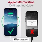 MFi-Certified - Made for iPhone, iPad, and iPod, this lightning cable is designed for Apple chargers with Apple MFi Certification to ensure it fits your device and your devices are safe from overheating or short circuiting. Fast Charging - Our iPhone lightning charger cable is a 10' long cord that provides a max-speed fast charge from a USB wall charger adapter or portable charger to your iPhone, iPad Air, Pro, or iPad Mini. Save time with this fast charger iPhone cable. Use Over & Over - This iPhone charger cable features an ultra-strong cord design made to endure up to 25,000 lifetime bends so the lightning cable can withstand the rigors of everyday use and last longer than the average cable. Transfer Data Consistently - The durable connector heads provide a sturdy connection for smooth uninterrupted data transfer. Dependably transfers documents, music, videos, and other files with your phone fast. Extra-Long Lightning Cable - Use your phone while it charges. Comes with one 10-foot long iPhone charger lightning to USB A cable. TALK WORKS lightning cables come in a variety of color choices to match your phone and personal style. This 10-foot long iPhone charging cable provides a fast charge from any basic USB wall charger adapter or portable charger to your iPhone. Our power cord is also compatible with iPad Air, Pro, Mini, and other devices using an 8-pin Apple lightning connector head. The lightning cable from TALK WORKS is designed exclusively for Apple and is rigorously tested and approved to qualify got MFi certification, ensuring your smart phone and other electronics are safe from overheating or short circuiting. Featuring a high-grade cable covering, this long-lasting iPhone charger cord can endure up to 25,000 lifetime bends without losing its shape. Strict testing ensures protection for your devices while using integrated circuit protection and maximum reinforcement to ensure internal wiring is guarded, and MFi certification ensures your iPhone charges and syncs with this lightning cable. The durable connector heads provide a sturdy connection for everyday use, and offer a superior phone data sync. With a fast charge experience, this durable charging lightning cable is built to last and will be there when you need to plug in. TALK WORKS offers tech accessories that make lives easier and more enjoyable. Our products include phone charging accessories, charging cables, power banks, and gaming accessories like cases, screen protectors, comfort grip controllers, carrying cases, charging docks, steering wheels, and tennis rackets.
