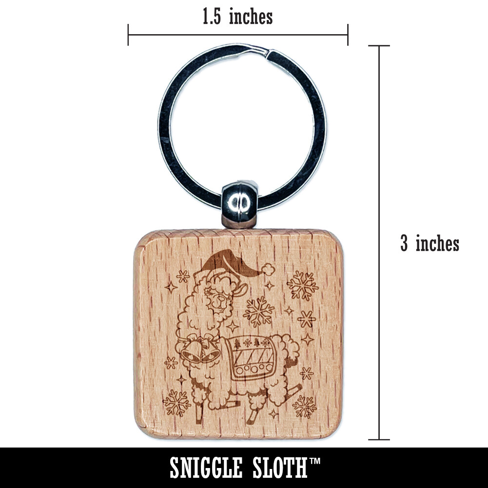 Festive Alpaca Engraved Wood Christmas Keychain Charm Gift