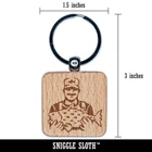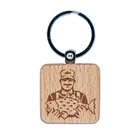 Fisherman Holding Fish Catch Engraved Wood Square Keychain Tag Charm