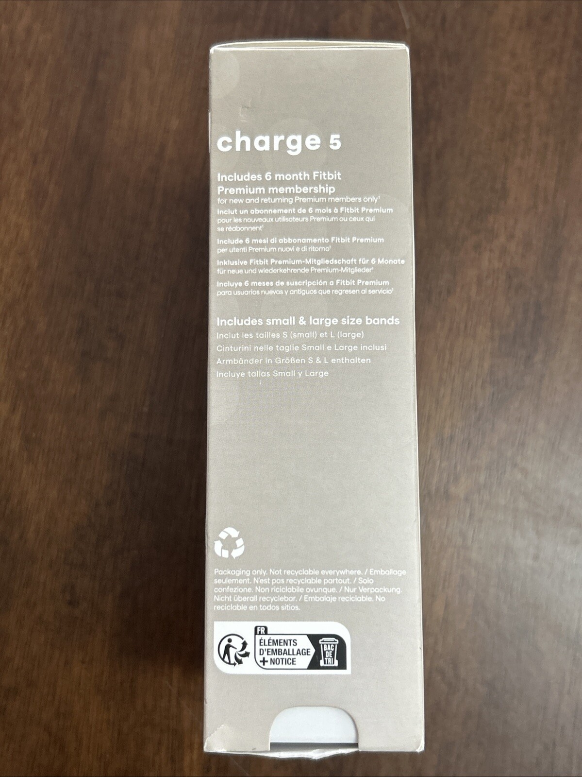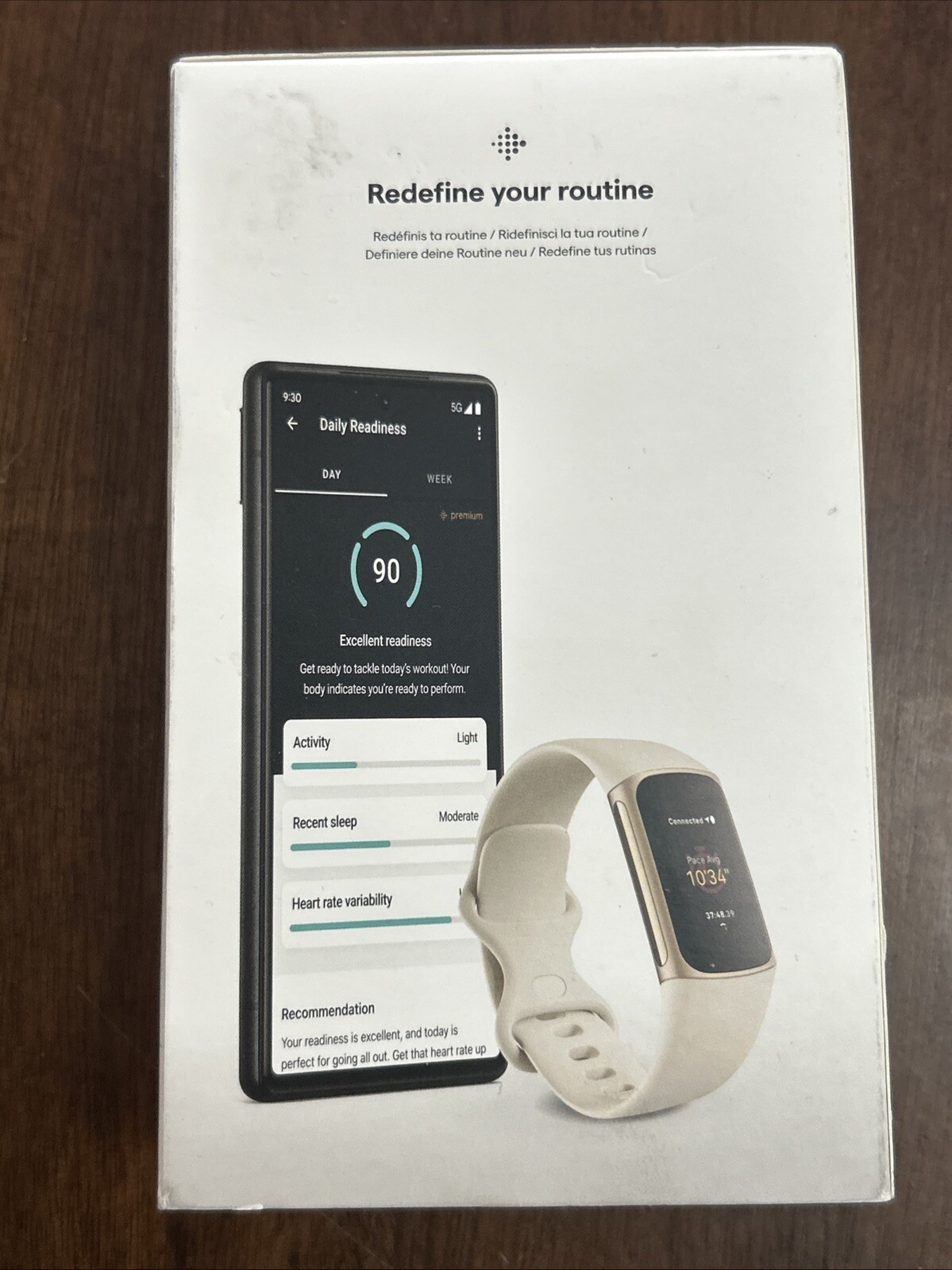 New, open box. Still in original wrapping/never used Fitbit Charge 5 is an advanced fitness and health tracker in Soft Gold/Lunar White color. It features a 240 x 240 display, stainless steel and silicone material, and is suitable for indoor/outdoor use. With various sensors like SpO2 and GPS, it provides measurements such as heart rate, speed, and distance. It is compatible with iOS and Android devices, has a rechargeable battery lasting up to 7 days, and is designed for activities like gym training, swimming, and yoga.