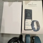 The Fitbit Charge 5 is an advanced fitness and health tracker that comes with built-in GPS and a touchscreen display. It has a blue stainless steel body with a Corning Gorilla Glass 3 cover and an aluminum frame. The wristband is made of silicone and the tracker is water-resistant. The Fitbit Charge 5 has a 240 x 240 display resolution and can measure heart rate, time, calories, distance, and more. It can also track sleep and has an accelerometer, ECG heart rate sensor, and GPS sensor. The tracker is Bluetooth compatible and can connect to other devices for data review. With an item weight of 28g and a battery life of up to 7 days, it is suitable for indoor and outdoor activities such as gym and training, swimming, yoga, and running and jogging. This used in good condition with an extra charging cable.