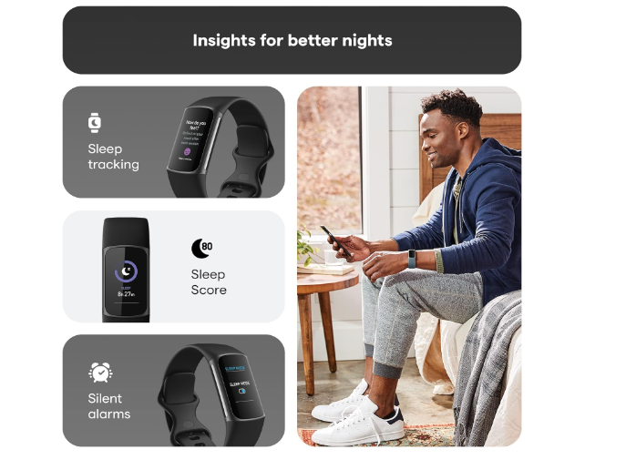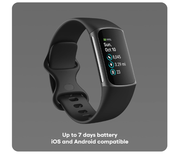 Optimize your workout routine with a Daily Readiness Score that reveals if you’re ready to exercise or should focus on recovery (Requires Fitbit Premium membership). Compatibility-Apple iOS 15 or higher, Android OS 9 or higher .Operating Temperature : -10°C to + 45°C.Radio transceiver : Bluetooth. Get a daily Stress Management Score showing your body’s response to stress and take steps to improve your levels with an on-wrist EDA sensor mindfulness session. Band Size:Sm: Fits wrist 5.1"- 6.7" . Lrg: Fits wrist 6.7" - 8.3" in circumference Track your heart health with high & low heart rate notifications and a compatible ECG app (The Fitbit ECG app is available in select countries. Not intended for use by people under 22 years old.) With the Health Metrics dashboard, track SpO2, heart rate variability, skin temperature variation and more (Not intended to diagnose or treat any medical condition and should not be relied on for any medical purposes.) See your real-time pace & distance without your phone using built-in GPS during outdoor activity, then see a map of your workout route in the Fitbit app Your stats come to life on a new color touchscreen that’s two times brighter than Charge 4 in daylight, all with up to 7-day battery (varies with use and other factors) Track calorie burn and optimize workouts with 24/7 heart rate tracking and Active Zone Minutes, which guide you toward your desired intensity level Get a better understanding of your sleep quality with a daily Sleep Score and graphs of your time in light, deep and REM sleep—then see how you can improve your sleep and wake up feeling energized