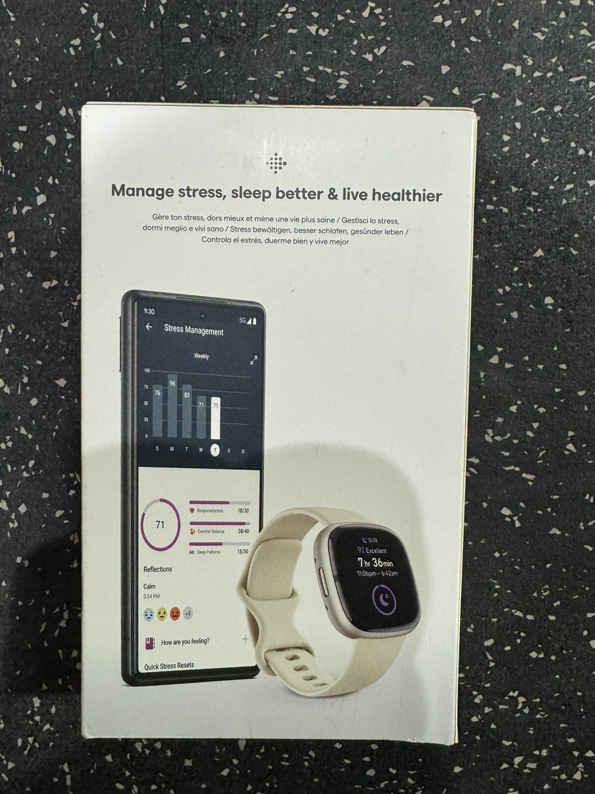 Fitbit Sense 2 Smartwatch with Advanced Health Tracking in Platinum Aluminum and Lunar White Band