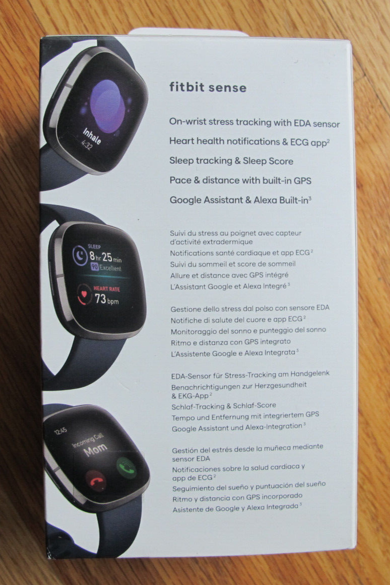 Fitbit Sense Advanced Smartwatch with Tools for Heart Health, Stress Management & Skin Temperature Trends, Carbon/Graphite, One Size (S & L Bands Included) New, unopened, box is little damaged. EDA Scan app detects electrodermal activity which may indicate your body's response to stress and a built-in skin temperature sensor logs yours each night so you can see when it varies.Band Size : Small : Fits wrist 140mm - 180mm in circumference. Large : Fits wrist 180mm - 220mm in circumference Assess your heart for atrial fibrillation –a heart rhythm irregularity- and easily share results with your doctor (The Fitbit ECG app is only available in select countries. Not intended for use by people under 22 years old.Operating temperature: 14° to 113°F An on-wrist skin temperature sensor tracks yours each night so you can see how it varies. You can also see your nightly blood oxygen levels at a glance with our collection of clock faces.Maximum operating altitude: 28,000ft High & low heart rate notifications alert you if yours seems above or below your average Battery lasts 6 plus days plus, fast charging gives you a full day’s charge in just 12 minutes (Varies with use and other factors; up to 12 hours with continuous GPS) Use built-in GPS during runs, hikes, rides and more to see pace & distance without your phone and use the built-in mic and speaker to take Bluetooth calls hands-free when your phone is nearby (Requires more frequent charging) Use Google Assistant or Amazon Alexa Built-in to get quick news, set bedtime reminders and alarms, control your smart home devices and more just by speaking to your watch