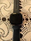This watch has been charged and is working. See picture ..There is a little discoloration on the band that has the slots.. it's not noticeable when you're wearing it.. there are no scratches on the face of the watch .. comes with two bands, the one on the watch which is small and then there's a large one that has never been worn ..To clean the connections, you would use rubbing alcohol on the actual charger and the back of the watch where you place the charger..