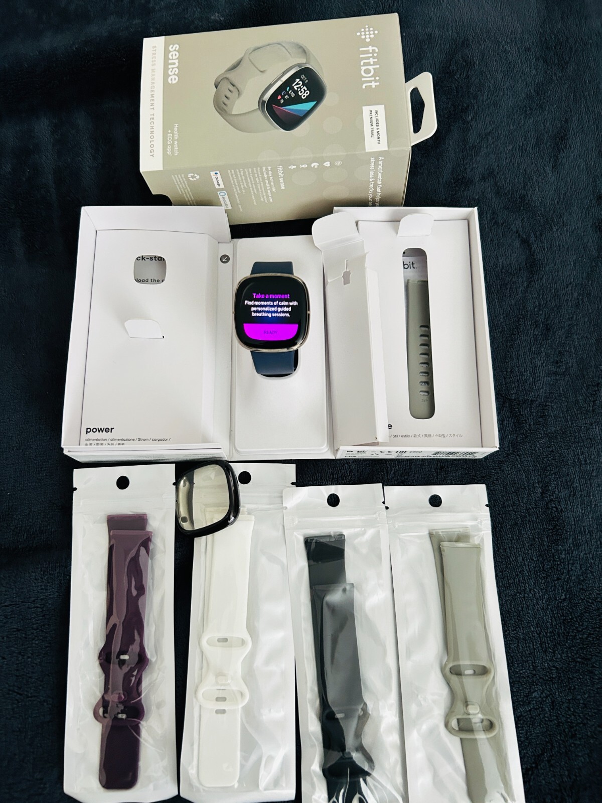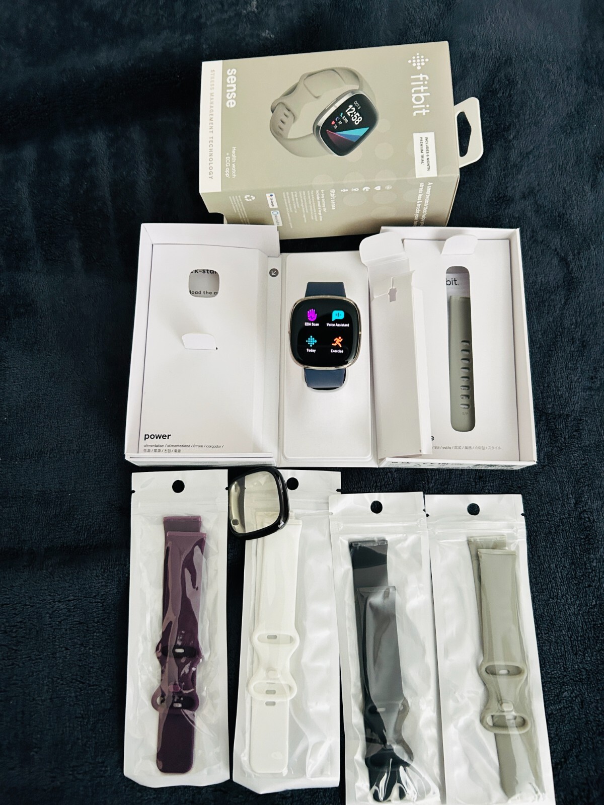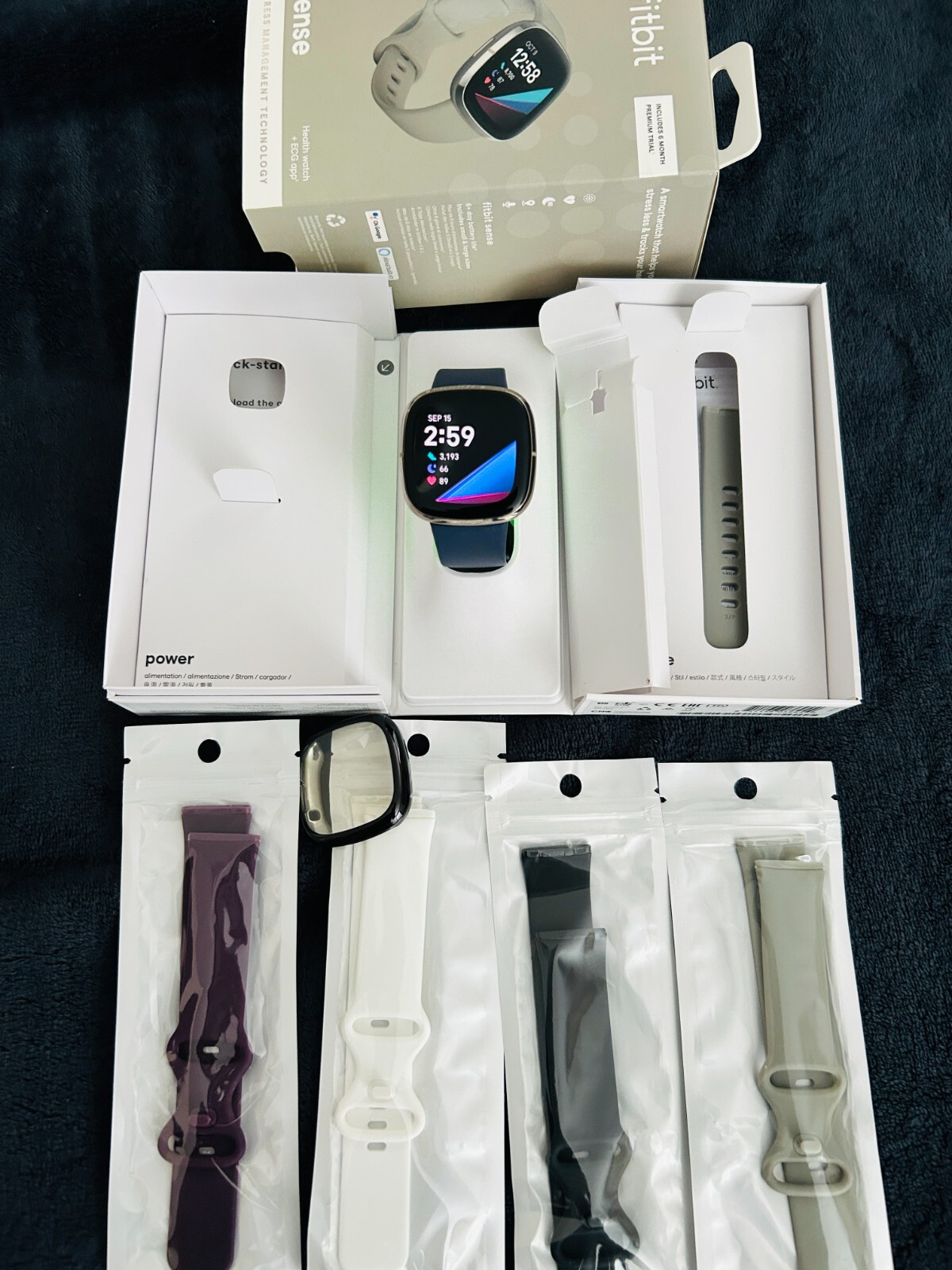 Fitbit Sense Advanced Activity Tracker Smartwatch Gray- Silver Package includes: Charger Wristbands (6) Face covers (2) Fitbit Sense Product details Meet Fitbit Sense - the advanced smartwatch that helps you tune in to your body and guides you toward better health. Assess your heart for atrial fibrillation (Afib) with a compatible ECG app right on your wrist, track & manage stress, better understand your sleep quality and even keep an eye on patterns in your skin temperature. Plus, Sense unlocks a 6-month free trial of personalized guidance and advanced insights from Fitbit Premium for new users. Fitbit is part of the Google family. Meet Fitbit Sense - the advanced smartwatch that helps you tune in to your body and guides you toward better health. • The EDA Scan app detects electrodermal activity which may indicate your body's response to stress. • Screen for atrial fibrillation anytime with the ECG app and easily share results with your doctor.* • A built-in skin temperature sensor logs yours each night so you can see when it varies. • Personalized health & fitness guidance with a free 6-month trial of Fitbit Premium for new Premium users.* • A stainless steel ring, polished frame & satin finish on a seamless, new infinity band. • High & low heart rate notifications alert you if yours seems above or below your average. • Battery lasts 6+ days—plus, fast charging gives you a full day’s charge in just 12 minutes.* • Use built-in GPS during runs, hikes, rides and more to see pace & distance without your phone. • Take calls, get texts and smartphone app notifications when your phone is nearby. Plus, send quick text & voice replies on Android only. • Track your time in light, deep and REM sleep. • Water resistant to 50m. Requires use of Fitbit app with compatible iPhone or Android devices. A Google account will be required. Meet Fitbit Sense - the advanced smartwatch that helps you tune in to your body and guides you toward better health. • The EDA Scan app detects electrodermal activity which may indicate your body's response to stress. • Screen for atrial fibrillation anytime with the ECG app and easily share results with your doctor.* • A built-in skin temperature sensor logs yours each night so you can see when it varies. • Personalized health & fitness guidance with a free 6-month trial of Fitbit Premium for new Premium users.* • A stainless steel ring, polished frame & satin finish on a seamless, new infinity band. • High & low heart rate notifications alert you if yours seems above or below your average. • Battery lasts 6+ days—plus, fast charging gives you a full day’s charge in just 12 minutes.* • Use built-in GPS during runs, hikes, rides and more to see pace & distance without your phone. • Take calls, get texts and smartphone app notifications when your phone is nearby. Plus, send quick text & voice replies on Android only. • Track your time in light, deep and REM sleep. • Water resistant to 50m. Requires use of Fitbit app with compatible iPhone or Android devices. A Google account will be required. Fitbit Sense