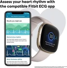 Fitbit Sense Health & Fitness Smartwatch W/GPS, Bluetooth Call/Text, Heart Rate SpO2, ECG, Skin Temperature & Stress Sensing (S & L Bands, 90 Day Premium Included) International Version (White/Gold) The Fitbit Sense is a stylish smartwatch to help you cope with the stress of modern life What's in the package? 1× Fitbit Sense Tracker 2× Classic Silicone Wristband/strap (Small & Large) 1× Original Charging Cable 1× Retail packaging Features & Benefits Fitbit Premium 1.59in l x 1.59in w x 0.49in h. ECG, stress sensing and a skin temperature sensor. Get notifications for calls, texts, calendar events and apps like Gmail and Facebook plus send quick replies and voice replies right from your wrist. Compatibility: Apple iOS 12.2 or higher, Android OS 7.0 or higher, Syncing range: Up to 30ft, Music control via Bluetooth Classic on Android and Bluetooth LE on iOS devices. Built-in GPS + GLONASS, Speaker, Microphone, Multi-path optical heart rate sensor, IR sensors for oxygen saturation (SpO2) monitoring Water-resistant to 50 meters. Battery life up to 6+ days. Heart rate tracking technology. Saves 7 days of detailed motion data minute by minute. Fitbit Sense is the advanced health smartwatch that helps you tune in to your body with tools for stress management, heart health, SpO2, skin temperature & more. Battery & Power: Battery life up to 6+ days. Battery life and charge cycles vary with use, settings, and other factors; actual results will vary. Use of the always-on display and SpO2 features will require more frequent charging. We recommend charging every few days to ensure you’re always tracking. Water-Resistance: Water resistant to 50 meters. After getting the band wet, we recommend drying the band because, as with any wearable device, it's best for your skin if the band is clean and dry. Heart Rate: Like all heart rate tracking technologies, accuracy is affected by physiology, location of device and different movements. Syncing: The Fitbit app is compatible with most popular phones and tablets. To set up and use your Fitbit products and services, you must install the Fitbit app on a compatible device running one of the following