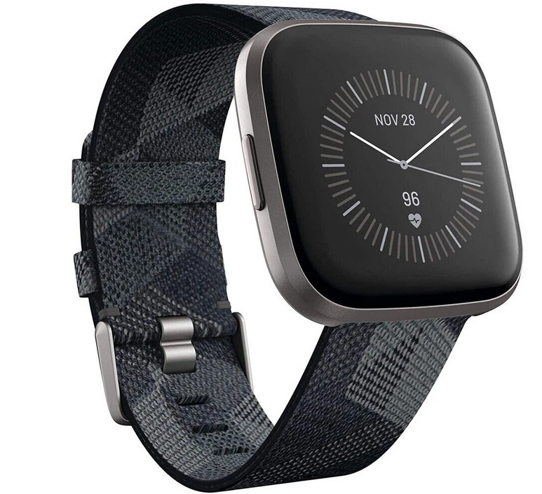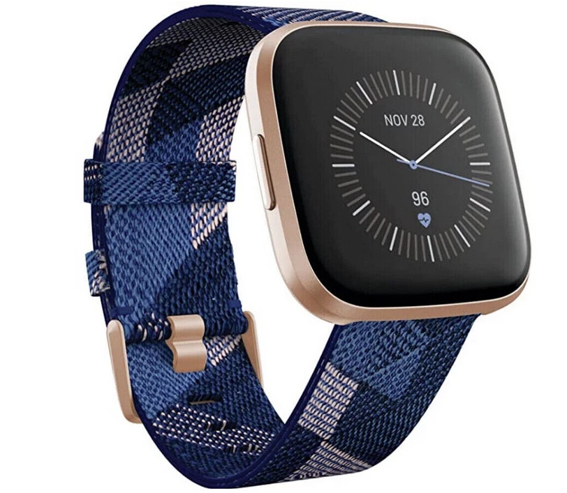 Brand new and sealed, not refurbished Fitbit Versa 2 Special Edition watch Woven wristband (both small & large) Classic wristband (both small & large) Charging cable Battery and Power Fitbit Versa 2 and Versa 2 Special Edition have a battery life of 6+ days. Battery life and charge cycles vary with use, settings, and other factors; actual results will vary. We recommend charging your watch every few days to ensure you're always tracking. Battery type: Lithium-polymer Charge time (0-100%): Two hours Radio transceiver: Bluetooth 4.0 Memory Saves 7 days of detailed motion data, minute by minute Saves daily totals for past 30 days Stores heart rate data at 1-second intervals during exercise tracking and at 5-second intervals all other times Water Resistance Fitbit Versa 2 and Versa 2 Special Edition are water-resistant to 50 meters. After swimming or getting the band wet, we recommend drying the band because, as with any wearable device, it's best for your skin if the band is clean and dry. We do not recommend wearing Versa 2 or Versa 2 Special Edition in a hot tub or sauna. Care Give your wrist a rest by taking the band off every now and then. If the band gets wet or if you sweat in it, remove and completely dry the band before putting it back on. Heart Rate Like all heart rate tracking technologies, accuracy is affected by physiology, location of the device, and different movements. Syncing Fitbit Versa 2 and Versa 2 Special Edition sync automatically and wirelessly to 200+ leading iOS and Android devices using Bluetooth LE wireless technology. Syncing range: Up to 30 feet Certain features like smartphone notifications may require Android 5.0+. Check your device compatibility. Syncing requires Bluetooth LE and Internet connection. Syncs with Mac OS X 10.6 and up, iPhone 4S and later, iPad 3 gen. and later and Android 5.0 and later. Music control via Bluetooth Classic on Android devices. Music control via Bluetooth LE on iOS devices. Both small and large sizes included in the box. Print this guide to find your fit. Small fits wrist 5.5" - 7.1" circumference Large fits wrist 7.1" - 8.7" circumference What's In the Versa 2 Smart Watch Music Experience Control your Spotify app, download Pandora stations and add Deezer playlists—plus store and play 300+ songs on your wrist.⧫ Smartphone Notifications See call, text or calendar notifications on screen & get push notifications from your favorite apps. Available when your phone is nearby. On-Screen Workouts Get on-screen workouts that play on your wrist and coach you through each move. Real-Time Pace & Distance Learn more about your runs and hikes by connecting to your phone's GPS to see pace and distance on display, plus get a map of your route in the Fitbit app. SmartTrack® Automatically record select exercises like swimming, running, aerobic workouts and more & see your stats in the Fitbit app. Sleep Tracking & Stages See your time spent in light, deep and REM sleep stages & get tips to help you improve Customizable Clock Faces Personalize the hi-res color touchscreen on your watch by choosing from a variety of clock faces designed for any occasion Lightweight Design Designed with a super-light aluminum case, Versa 2 is comfortable enough to wear all day and night. Fitbit Pay™ Pay without your wallet and keep earning reward points by uploading your credit card and making secure purchases from your wrist. See payment availability. Sleep Score Based on your heart rate, time asleep, restlessness and breathing, this personalized score helps you better understand your sleep quality each night. Always-On Display Mode See real-time exercise stats and check the time with just a glance—even when your hands are full. Turn off to be more discreet. All-Day Activity Track steps, heart rate, distance, calories burned, floors climbed, active minutes, hourly activity & stationary time. Bluetooth® Connect your watch to wireless Bluetooth headphones to listen to your favorite tunes—without the wires Female Health Tracking Use your watch with the Fitbit app to log your period, record symptoms & compare your cycle against other health stats like sleep, activity and weight. Cardio Fitness Level Get a better understanding of your fitness level and see how you can improve over time with a personalized cardio fitness score. Dashboard Set goals, track progress and get a more complete picture of your health and fitness—all on the Fitbit app. 24/7 Heart Rate Tracking Get continuous heart rate tracking, follow trends over time & see real-time heart rate zones. Apps Access your favorite apps for fitness, sports, news, travel, transit and more with a simple tap. 5+ Day Battery Life With a long battery life of 5+ days, Versa 2 tracks your morning, night & everything in between Swimproof & Tracks Swims Track your pool workouts with a swimproof case that’s water resistant to 50 meters. 15+ Exercise Modes Track specific workouts in modes like run, bike or weights to see real-time stats on screen & get post-workout summaries. Guided Breathing Sessions Find moments of calm throughout your day with personalized breathing sessions based on your heart rate. Hi-Res Touchscreen Amplified brightness up to 1,000 nits & durable screen made from Corning® Gorilla® Glass 3.