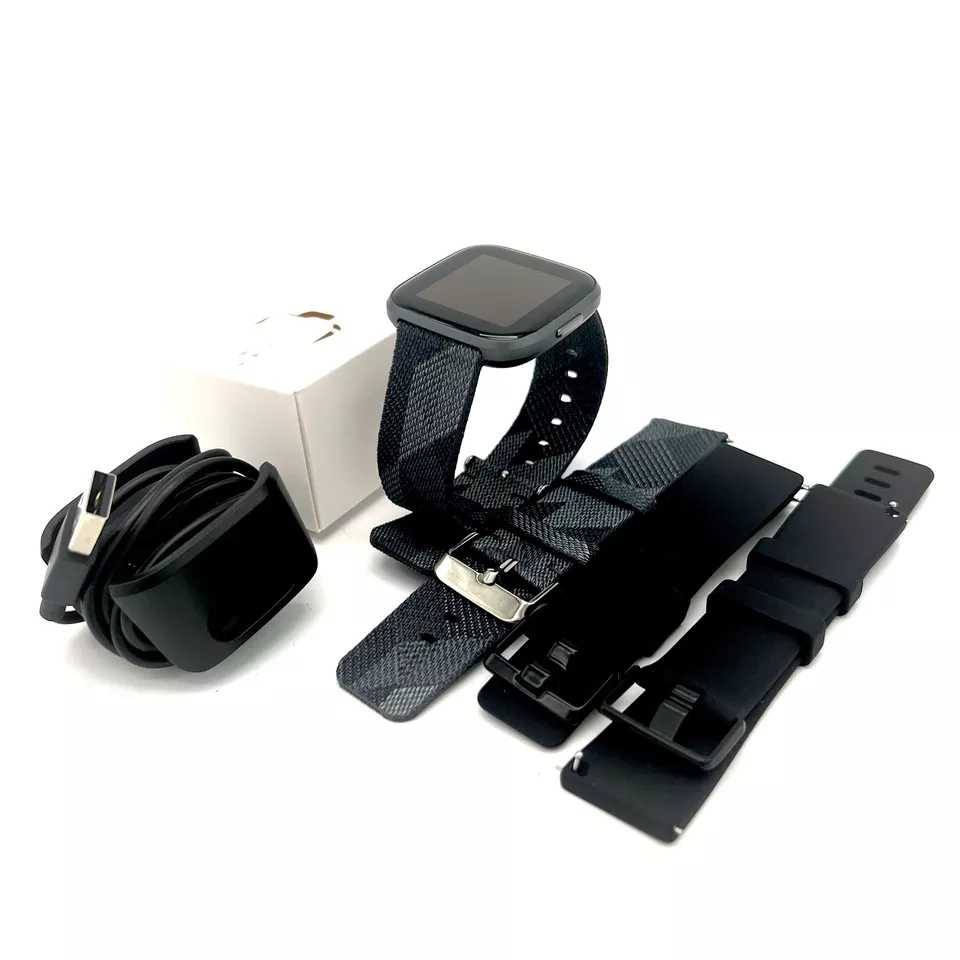 Item descirption: Condition: New Other Warranty: Yes Model: Fitbit Versa 2 Compatibility: Android, iOS Features: Altimeter, Bluetooth, Temperature, Water Resistant, Timer, Clock, Rechargeable Battery, Alarm, Exercise Log, Sleep Tracker, Stopwatch, Wireless, Set Goals, Heart Rate Monitor, Calorie Monitor, GPS, Memory Storage Activity: Gym & Training, Yoga, Running & Jogging Battery type: Lithium-polymer Charge time (0-100%): Two hours Battery life and charge cycles vary with use, settings, and other factors; actual results will vary. We recommend charging your watch every few days to ensure you're always tracking. Specification: Care Give your wrist a rest by taking the band off every now and then. If the band gets wet or if you sweat in it, remove and completely dry the band before putting it back on. Heart Rate Like all heart rate tracking technologies, accuracy is affected by physiology, location of the device, and different movements. Syncing Fitbit Versa 2 and Versa 2 Special Edition sync automatically and wirelessly to 200+ leading iOS and Android devices using Bluetooth LE wireless technology. Syncing range: Up to 30 feet Certain features like smartphone notifications may require Android 5.0+. Check your device compatibility. Syncing requires Bluetooth LE and Internet connection. Syncs with Mac OS X 10.6 and up, iPhone 4S and later, iPad 3 gen. and later and Android 5.0 and later. Music control via Bluetooth Classic on Android devices. Music control via Bluetooth LE on iOS devices. Music Experience Control your Spotify app, download Pandora stations and add Deezer playlists—plus store and play 300+ songs on your wrist. Smartphone Notifications See call, text or calendar notifications on screen & get push notifications from your favorite apps. Available when your phone is nearby. On-Screen Workouts Get on-screen workouts that play on your wrist and coach you through each move. Real-Time Pace & Distance Learn more about your runs and hikes by connecting to your phone's GPS to see pace and distance on display, plus get a map of your route in the Fitbit app. SmartTrack Automatically record select exercises like running, aerobic workouts and more & see your stats in the Fitbit app. Sleep Tracking & Stages See your time spent in light, deep and REM sleep stages & get tips to help you improve Customizable Clock Faces Personalize the hi-res color touchscreen on your watch by choosing from a variety of clock faces designed for any occasion Lightweight Design Designed with a super-light aluminum case, Versa 2 is comfortable enough to wear all day and night. Sleep Score Based on your heart rate, time asleep, restlessness and breathing, this personalized score helps you better understand your sleep quality each night. Always-On Display Mode See real-time exercise stats and check the time with just a glance—even when your hands are full. Turn off to be more discreet. All-Day Activity Track steps, heart rate, distance, calories burned, floors climbed, active minutes, hourly activity & stationary time. Bluetooth Connect your watch to wireless Bluetooth headphones to listen to your favorite tunes—without the wires Female Health Tracking Use your watch with the Fitbit app to log your period, record symptoms & compare your cycle against other health stats like sleep, activity and weight. Cardio Fitness Level Get a better understanding of your fitness level and see how you can improve over time with a personalized cardio fitness score. Dashboard Set goals, track progress and get a more complete picture of your health and fitness—all on the Fitbit app. 24/7 Heart Rate Tracking Get continuous heart rate tracking, follow trends over time & see real-time heart rate zones. Apps Access your favorite apps for fitness, sports, news, travel, transit and more with a simple tap. 2+ Day Battery Life With a long battery life of 2+ days, Versa 2 tracks your morning, night & everything in between 15+ Exercise Modes Track specific workouts in modes like run, bike or weights to see real-time stats on screen & get post-workout summaries. Guided Breathing Sessions Find moments of calm throughout your day with personalized breathing sessions based on your heart rate. Package Includes: Fitbit Versa 2 wristbands (both small & large) Charging cable Manual