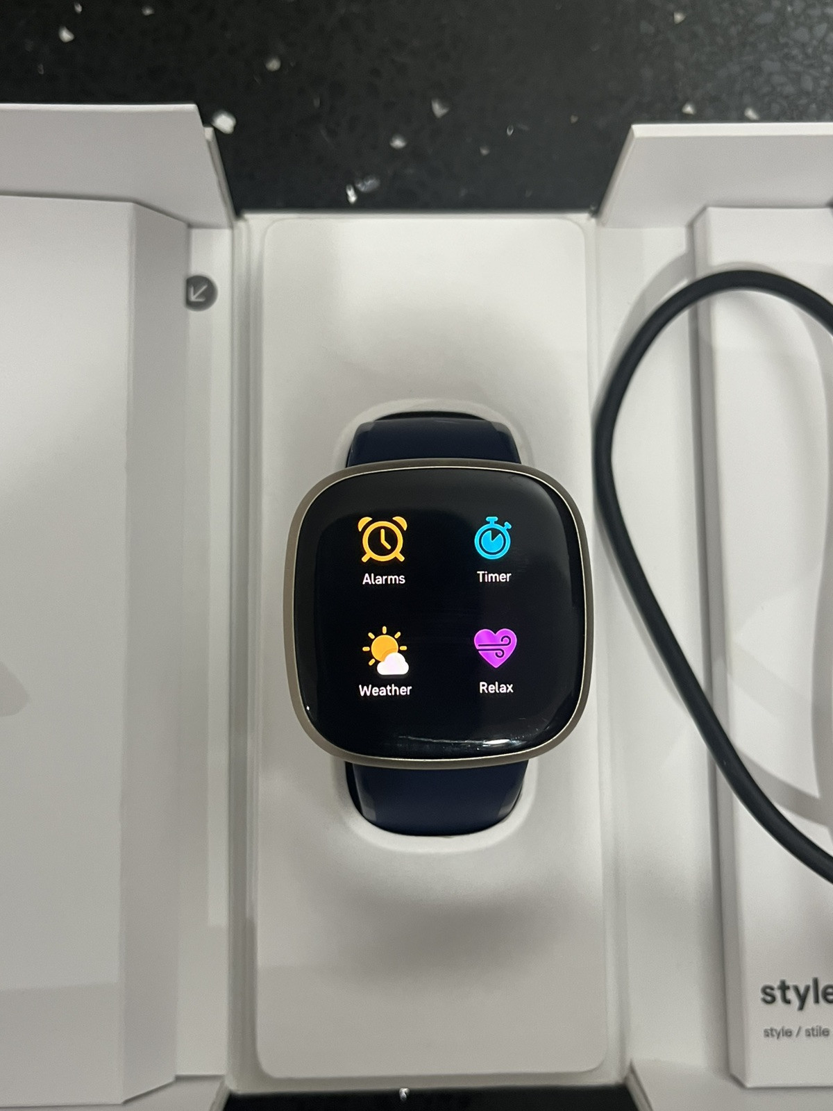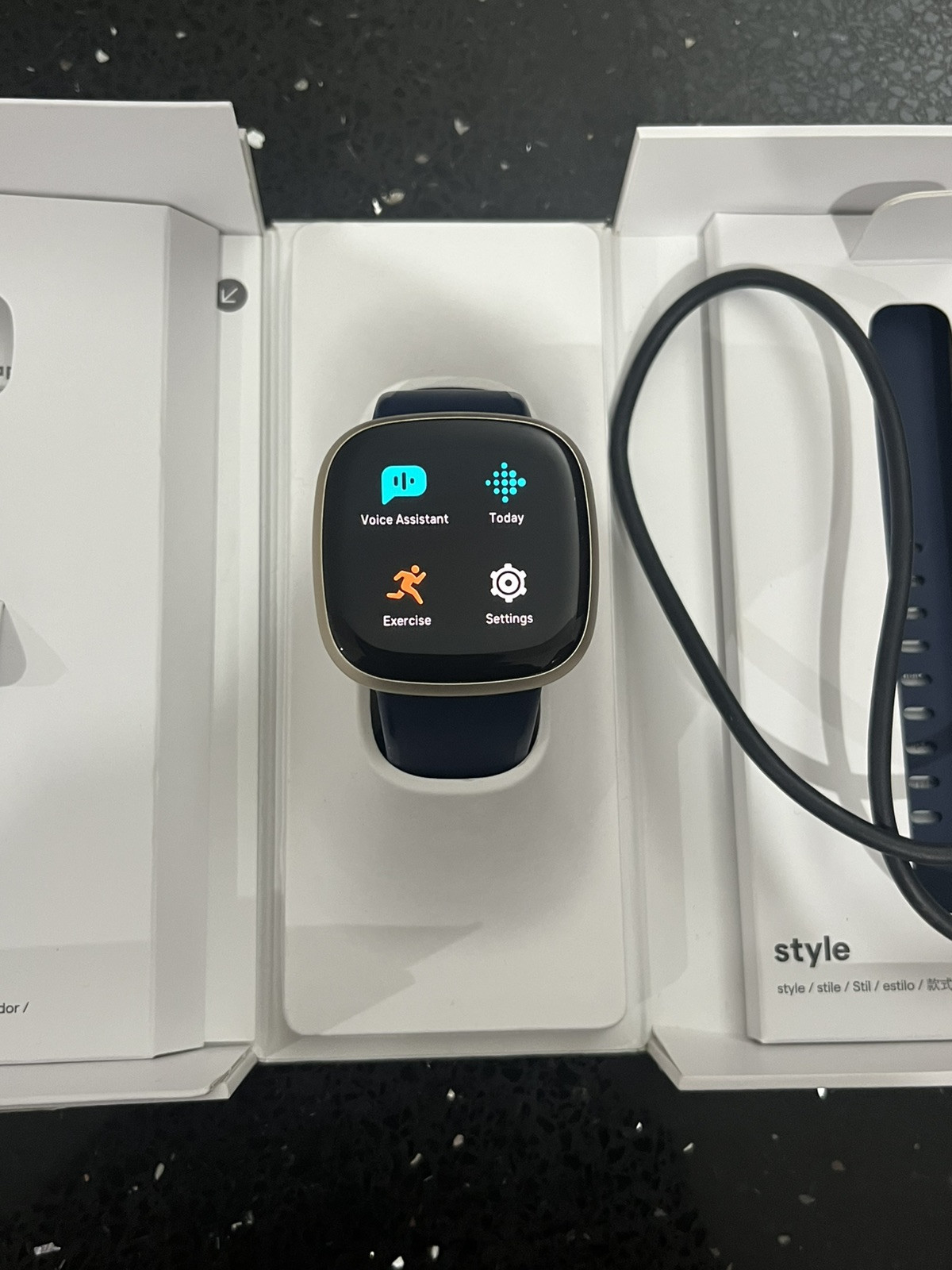 In great working and physical condition. Currently installed with midnight infinity band small to medium size. It is slightly worn but is still fine to use. Comes with additional band large size, box and USB charger. Can sync with the Fitbit app. Will be posted securely with tracking. ABSOLUTELY NO RETURNS, REFUNDS, OR EXCHANGES ON ANY ITEM IF YOU: DO NOT READ THE DESCRIPTION MISINTERPRET THE DESCRIPTION OR READ IT INCORRECTLY, ASSUME THE SALE INCLUDES THINGS THAT ARE NOT PICTURED OR MENTIONED, DO NOT VIEW ALL OF THE PICTURES SUPPLIED IN THE LISTING, CHANGE YOUR MIND AFTER PAYMENT HAS BEEN MADE, OR “ACCIDENTALLY” PURCHASE.