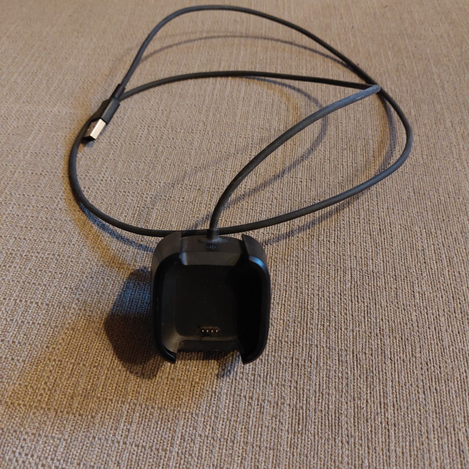 This is a used model. The Fitbit Versa Fitness Smartwatch in Black is a unisex activity tracker that provides time and calorie measurements. It features wireless connectivity, Bluetooth, a rechargeable battery, cadence tracking, heart rate monitoring, water resistance, sleep tracking, and more. Suitable for various activities like gym training, walking, swimming, yoga, and running.