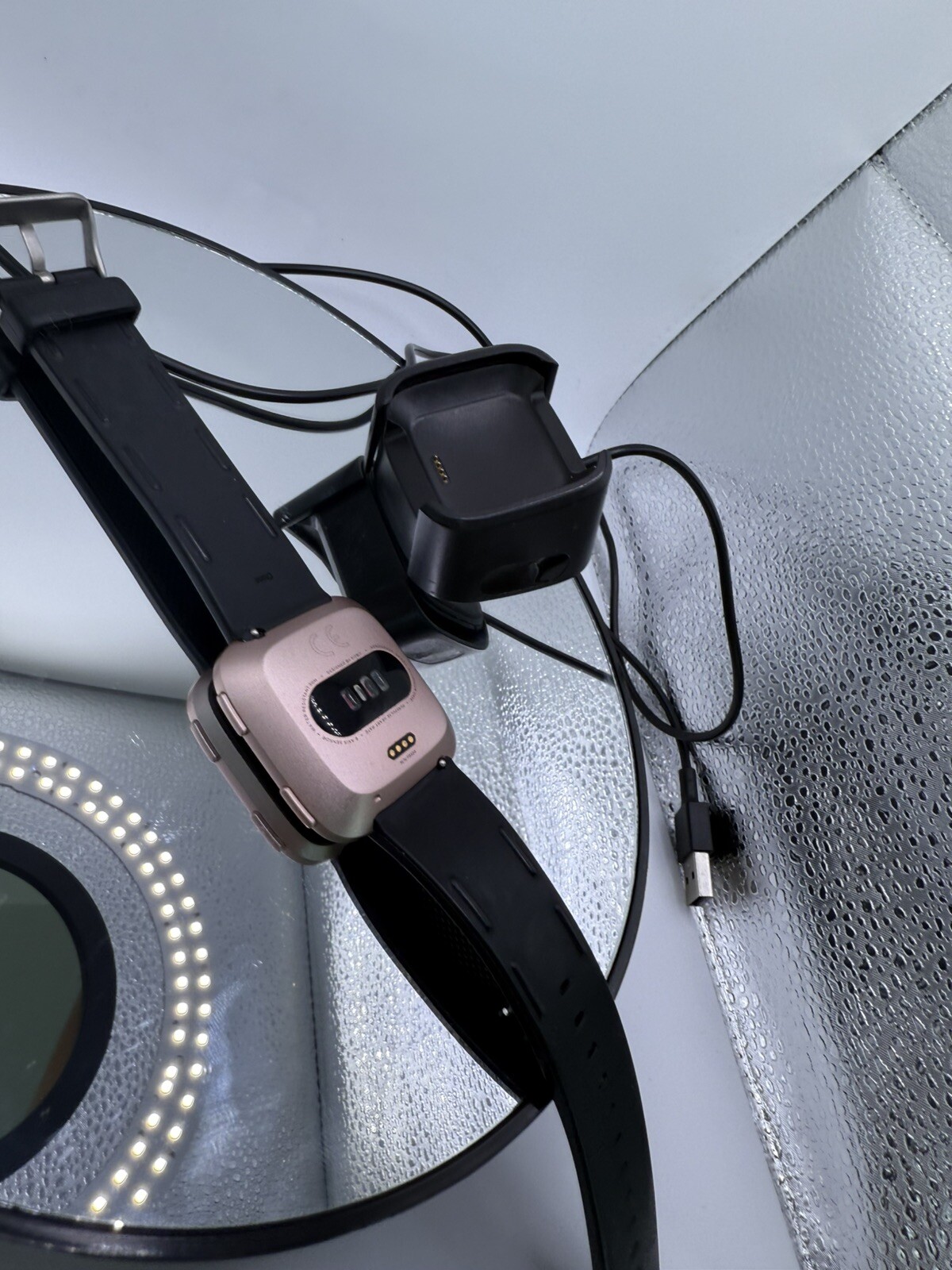 Fitbit Versa Fitness Smartwatch Peach/Rose-Gold Aluminium. Condition is Used. Shipped with USPS Ground Advantage.