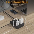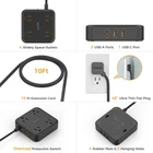Product Description TESSAN Power Strip 10 Ft 7 in 1 Charging Station Flat Plug Power Strip with USB Ports 4 widely spaced AC outlets can accommodate 4 big plugs simultaneously without blocking each other; ideal for bedroom, hotel, office, and dorm room 2 types of USB ports can detect charged devices and provide charging speeds up to 3A; ideal for earphone, cell phone, tablet, etc Space Saving Flat Plug Ultra-Thin Flat Plug & Flat Extension Cord 0.31 inch flat plug: The slim design of the flat plug allows the power cord to sit close to the wall so that it could be easily hide in the back the furniture、bed and refrigerator Flat Extension Cord: The flat plug extension cord doesn't bulge when laid underneath the carpet and feel nothing when you step on them, lowering the risk of tripping USB Charging Station Dual USB A ports can charge up to 2.4A, and the USB C port can charge up to 3A; Ideal for cell phone, tablet, laptop, earphone, etc. Cruise Ship Essentials Lightweight and compact power strip for carrying around, it's the ultimate travel charging station for your electronic appliances 45° Flat Plug Power Strip The 45° flat plug is engineered to allow the power cord to sit close to the wall and fit easily in tight spaces, like behind the sofa, wardrobe Overload Protection Switch Our power strip includes an integrated circuit breaker to protect against overload. It automatic power-off if the connected equipments are overloaded Wall Mountable Design Additional 2 keyholes on back can allow you install this flat wall extension cord on wall, workshop etc. Save your spaces 4x Anti-Slip Rubber Feet There are 4 anti-slip rubber feet at the bottom of the power strip, which makes it stably to stand on the desktop