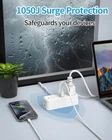 【Thin Extension Cord 10 Ft】This white 10ft ultra-thin flat extension cord is much thinner than standard round cables, only 0.15in thick, allowing it to run smoothly under carpets and through door gaps. The soft slim design ensures maximum flexibility and easy access to power wherever you need it. 【Slim Flat Head Power Strip】With a slim 0.28" design flat plug, it is designed to maximize space saving. This low-profile flat wall plug can be easily installed behind sofas, beds, desks, and closets close to the wall, 45 degree angle design will not affect other outlets. 【7 in 1 Desktop Power Strip】The flat outlet extension cord features 4 wide AC outlets to accommodate large adapters without blocking adjacent outlets. And with 2 USB-A and 1 USB-C charging ports and built-in smart charging technology, it can charge up to 7 devices simultaneously, ideal for computers, laptops, fans, phones, , and more. 【Surge Protector Power Strip】 This power strip with USB features multiple safety protections, including 1050J surge protection, overload protection, short circuit protection, over current protection, and more, protecting your expensive electrical appliances from damage caused by lightning, surges and spikes at home, office dorm etc. 【Wall Plug Design and Non-Slip Mats】The bottom of this small power strip is designed with hanging holes and non-slip mats, 2 hanging holes to install the plug on the wall, and 4 rubber non-slip mats to keep the socket on the smooth desktop, a must-have accessory for college dorm room, home, office, bedroom, kitchen, etc.