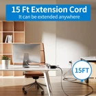 【15Ft Extension Cord】The 15 Ft flat extension cord gives you the flexibility to reach anywhere in the room. If you have only a few outlets in your house, you know how difficult it can be to charge your phones and when you want to use an outlet anytime. The black extension cord provides a good solution for extending the outlet. Whether you are lying on the bed or sitting at the desk, the15Ft USB extension cord can help you quickly charge multiple devices in an efficient and flexible way 【7 IN 1 Desktop Power Strip】 The 25Ft power strip has 3 AC ports, 2 USB C ports, and 2 USB A ports, a variety of plug types that can meet all your charging needs. The 3 AC ports have a wide spacing of 1.81 inches, so there is no need to worry about the plugs blocking each other. 4 USB charging ports can meet the needs of charging multiple electronic devices at the same time. 【Flat Cord & 45°Right Angle Flat Plug】 power strip with USB ports adopts a 45°angle ultra-thin plug, so you no longer have to worry about blocking other wall sockets. The market-leading 0.35-inch ultra-thin plug can also save more space and can be used even behind sofas and cabinets. The 0.11-inch flat cord of the power strip with USB ports can be used in more places, and it is also with the carpet or under the door. 【USB-C &USB-A Fast Charging】 15 Ft extension cord adopts the latest design. The 15 ft extension cord is equipped with 2 USB C fast charging ports, which is unique among similar products in the market. The USB port of the 15 ft extension cord charges devices at a maximum of 5V/3.1A, which is 30% faster than ordinary charging ports. The combination of 2 USB A ports and 2 USB C ports can meet the needs of different devices for USB. 【2 Ways to Install & Cruise Ship Approved】 The extension cord with USB ports provides 2 installation methods. The 2 screws and mounting template can help you quickly install the extension cord on the wall. If it is not convenient to use screws, 4 adhesive sticker pads can also help you fix the power strip on the wall. Our extension cord with USB ports is also cruise ship approved and it can help you extend your charging outlets when you are traveling on the royal cruise ship.