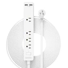 【Low Profile Flat Extension Cord 】- The flat extension cord is thin enough o run along the wall, floor or under the carpet that would lay flat and not cause a bulge. No more worry about damaging the cables when you step on the carpet, and makes sweeping and mopping easier. FLAT PLUG is designed for tight spaces like behind furniture, bookshelves, desks, wall-mounted TV, or anything close to the wall not allowing you to use the standard outlet. A true space saver! 【15 FT Extension Cord Power Strip】- The Extra long extension cord 15ft gives you flexibility to reach distant outlets and hard to reach places. A perfect solution for when power outlets are not conveniently located nearby. Comes with a cable tie for easy organization. If your drywall is white, this soft white extension cord can be seamlessly blended with your wall. A brilliant way to hide all those ugly wires! 【Flat Extension Cord with USB Ports】This long cord power strip with 4 AC outlets (1 widely outlets) 2 smart USB ports can charge up to 6 devices simultaneously. One wide spaced AC outlets can accommodatable for slightly larger power adapters without blocking adjacent outlets. Whether as a desktop power strip or a nightstand usb charging station, it can be competent, and cleans up all the cord chaos. 【Mountable Design】- The two mounting holes allows this long cord power strip to be securely installed in various applications, such as wall, nightstand or under desk, no more running messy tangled wires down to the floor outlet. Slim power strip fits nicely on your desk, nightstand or dresser at home, and cleans up all the cord chaos. 【Built-in Full-Round Protection】15ft power strip with usb is made of high strength -resistance ABS+PC shell, making it fireproof up to 1382 F. The reliable overload switch will trip off automatically to protect your devices and your home when the power overload.