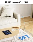 【Compact Power Strip】Measuring just 3.31 x 1.89 x 1.34 inches, this sleek design is perfect for tight spaces and effortlessly conceals itself, even on a desktop without taking up valuable workspace. Its compact size allows it to fit easily into suitcases or handbags, bidding farewell to bulky adapters and simplifying your travels. 【5 Ft Flat Extension Cord】This flat extension cord measures a mere 0.11 inches in thickness, significantly more flattened than standard cords, enabling it to glide effortlessly beneath baseboards, through furniture gaps, and across doorways. It eliminates the clutter caused by cumbersome wires that disrupt interior design and minimizes tripping hazards. The 5 Ft length ensures easy reach to distant wall outlets, solving the problem of insufficient cable length for devices, thus granting you the freedom to choose your plug-in distance at home or while traveling. 【45° Flat Plug Design】We've not only incorporated flat wiring, but also designed the plug to be slim and compact. The 0.31-foot flat plug easily slides into narrow spaces, allowing furniture to snugly align with walls. It's perfectly suited for placement behind TVs, nightstands, sofas, sliding doors, maintaining a discreet, stylish, and tidy appearance. The 5-foot extension cord features a 45-degree angled flat plug that won't block the lower outlet of your duplex wall receptacle. 【Stylish Cubic 3-Way Design 6-in-1 Power Strip】This compact power board features three outlets, two USB-A ports, and one USB-C port in a sleek cube design. The power strip boasts a unique three-sided independent plug-and-play configuration that maintains its small footprint while enabling you to plug in multiple devices without obstructing neighboring sockets, fully leveraging its compact size for optimal space-saving benefits. Note: All USB ports output 5V/3.1A with a maximum of 15.5W. 【Versatile for Any Setting】The wall-mountable power strip comes with holes and adhesive sticker pads, providing a mounting option so you can install it on walls, bedside tables, or desks, eliminating the need to connect tangled cords to floor outlets. The four anti-slip rubber pads at the bottom ensure it stays put on tabletops and nightstands without sliding off.